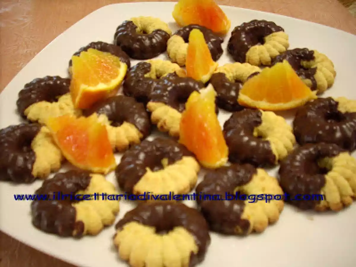 Biscotti all'arancia e cioccolato Altrofacile45 min451 Kcal Invia questa ricetta ad un amico Stampa la ricetta Contatta l'autore della Ricetta Pubblica la foto di questa ricetta Ingredienti 5 150 g di farina bianca un pizzico di sale 60 g di burro 50 g di farina di mandorle 50 g di zucchero 1 cucchiaio di scorza d'arancia grattata 1 tuorlo 2 cucchiai di succo d'arancia fresco 125 g di cioccolato fondente Costo stimato: 3.1Euros€ (0.62€/Porzioni)