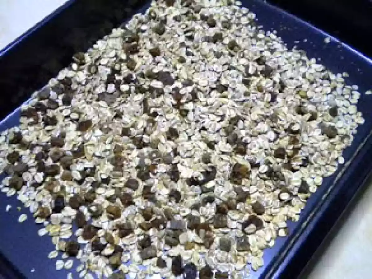 Biscotti con muesli e miele PrecedenteProssimo Altrofacile40 min527 Kcal Invia questa ricetta ad un amico Stampa la ricetta Contatta l'autore della Ricetta Pubblica la foto di questa ricetta Ingredienti 4 200 g di muesli 50 g di farina 00 50 g di farina integrale 50 g d'olio 100 g di miele d?acacia 1 uovo intero 1 pizzico di sale 1 cucchiaino di lievito per dolci vanigliato