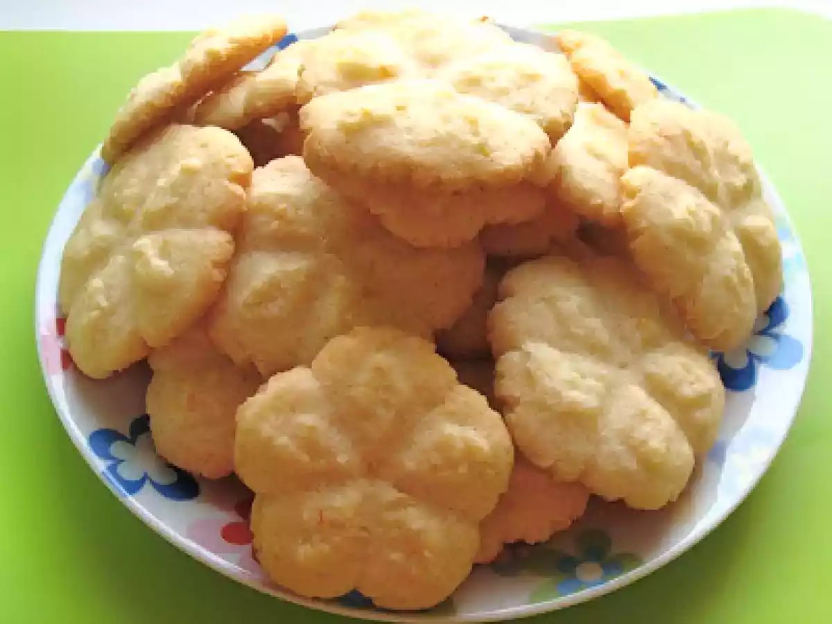 Biscotti magici agli agrumi vota adesso Altrofacile40 min Invia questa ricetta ad un amico Stampa la ricetta Contatta l'autore della Ricetta Pubblica la foto di questa ricetta Ingredienti 10 150 g di farina 00 Molino Chiavazza 1 cucchiaino di bicarbonato 60 g di burro agli agrumi Cascina San Cassiano 60 g di burro 90 g di zucchero 1/2 arancia 1/2 limone 1 cucchiaino di succo di pompelmo