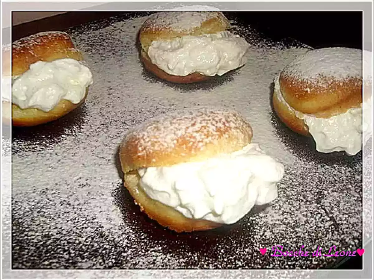 Metteteli su carta assorbente. - Tagliateli in due e farciteli prima con poca crema e poi con abbondante panna montata .