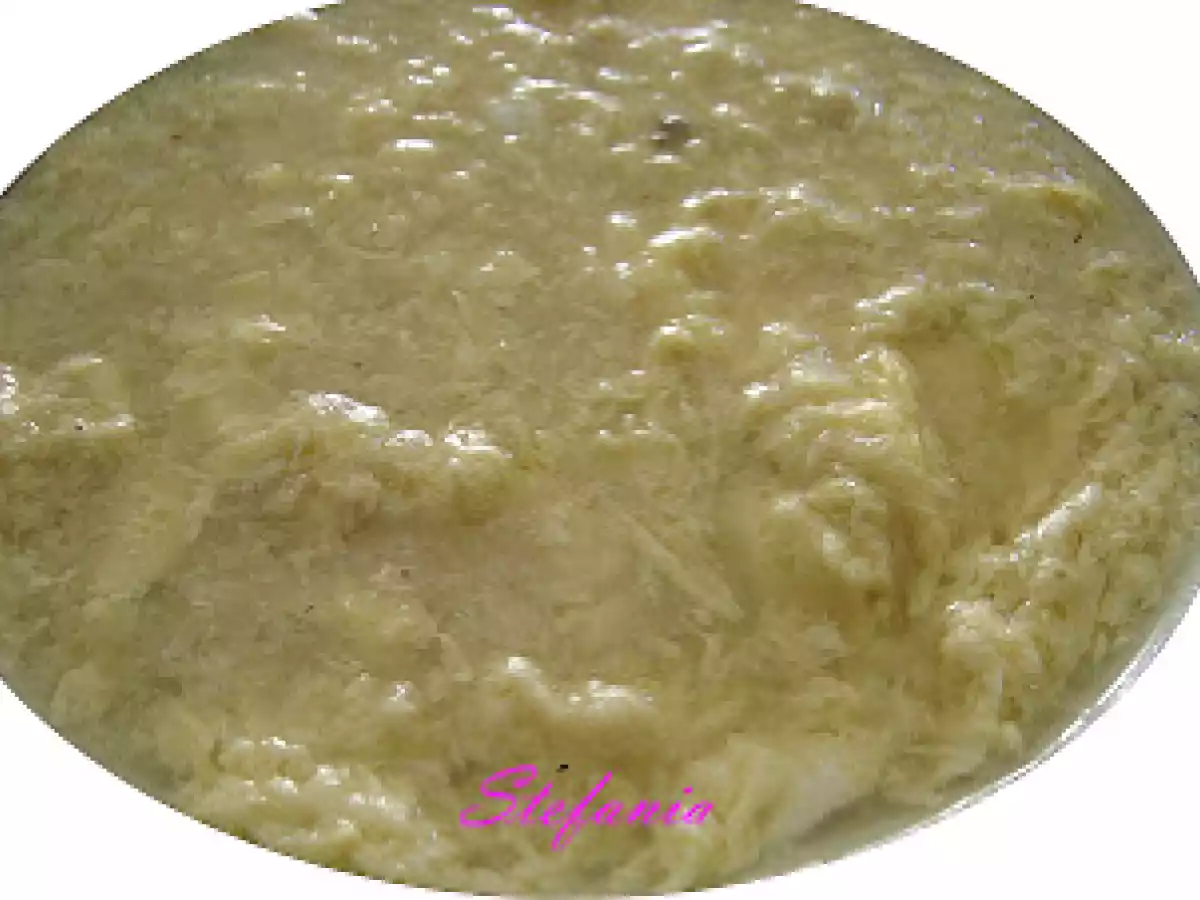 - In una pentola riscaldare l'olio di oliva e versarci la farina, mescolare in continuazione finché non diventa di colore bruno; mettere nella pentola il brodo mescolare e portare a bollore. A parte battere le uova. Non appena il brodo inizia a bollire versarci le uova a filo e mescolare con una forchetta, in maniera da creare dei capelli d'angelo con l'uovo che si va a condensare. Bollire per 1-2 minuti e impiattare.