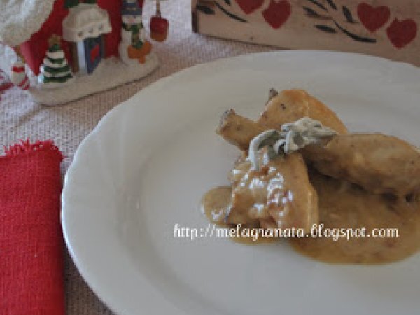 Buona immacolata. la faraona panna e whiskey al profumo di salvia. vota adesso PrecedenteProssimo Altrofacile40 min Invia questa ricetta ad un amico Stampa la ricetta Contatta l'autore della Ricetta Pubblica la foto di questa ricetta Ingredienti 2 una faraona, bella cicciottella 2 scalogni farina burro e olio evo un mazzetto di salvia i bicchiere di whisky 200 g panna per cucinare. sale
