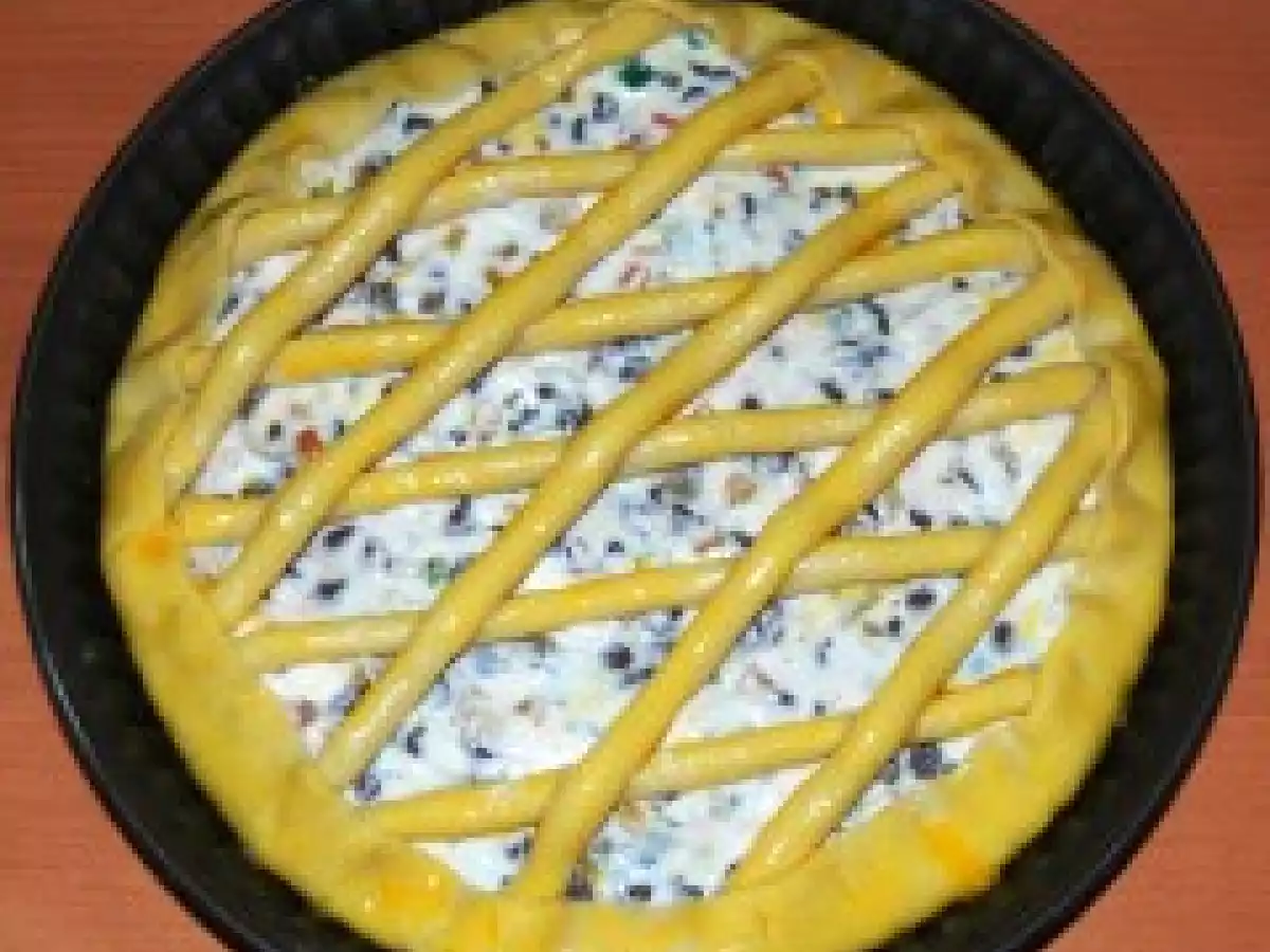 Buonissima e facile...la crostata di ricotta con canditi e gocce di cioccolato PrecedenteProssimo Altrofacile1 ora Invia questa ricetta ad un amico Stampa la ricetta Contatta l'autore della Ricetta Pubblica la foto di questa ricetta Ingredienti 5 Per la frolla 300 g di farina 100 g di burro 50 g di panna fresca 2 uova + un tuorlo per spennellare la superficie 100 g di zucchero un pizzico di sale la buccia grattugiata di un limone non trattato Per la farcia 500 g di ricotta di pecora 150 g di zucchero 70 g di scorza di arancia candita 70 g di scorza di cedro candita 120 g di gocce di cioccolato