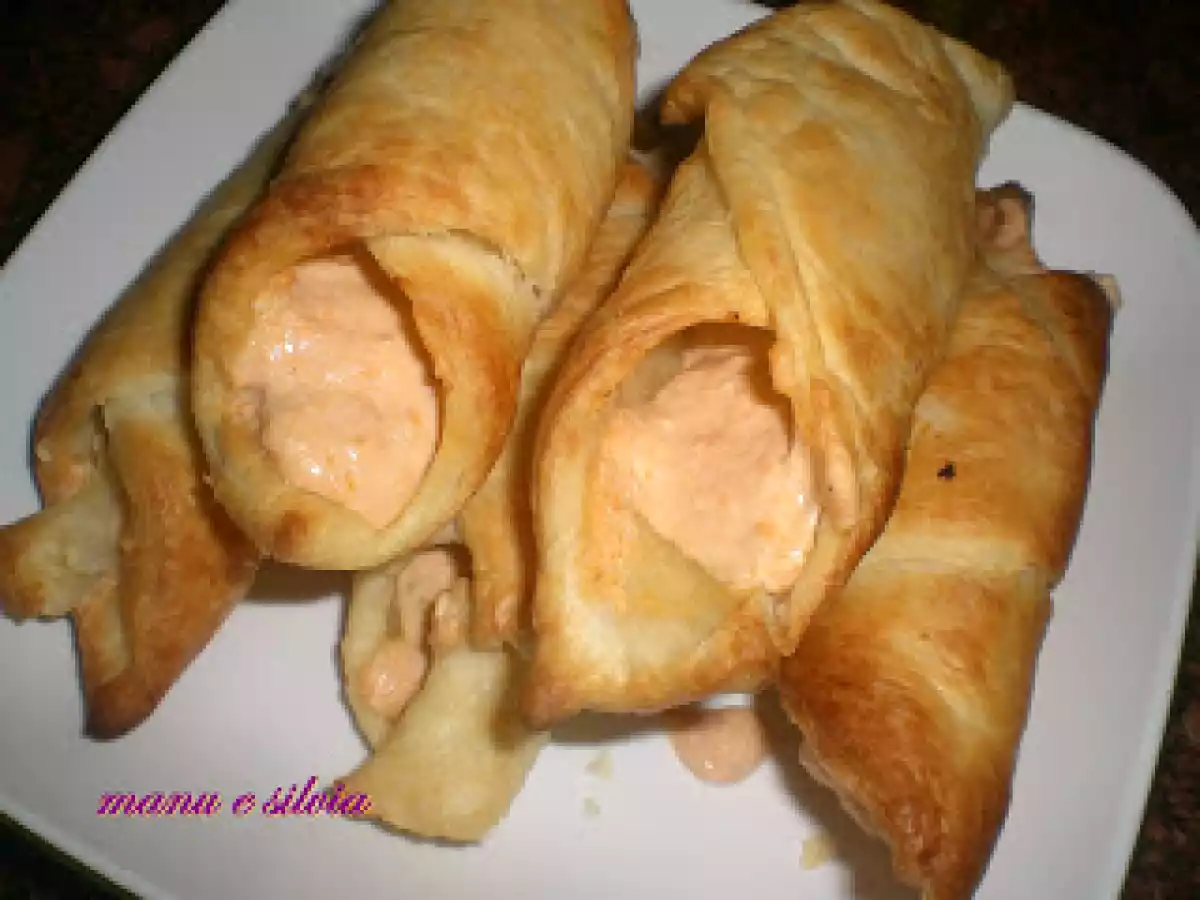 Cannoncini di sfoglia al salmone Altrofacile50 min433 Kcal Invia questa ricetta ad un amico Stampa la ricetta Contatta l'autore della Ricetta Pubblica la foto di questa ricetta Ingredienti 4 1 conf pasta sfoglia 100g crema di salmone 100g ricotta latte erba cipollina aglio in polvere burro olio di semi sale Costo stimato: 4.15Euros€ (1.04€/Porzioni)