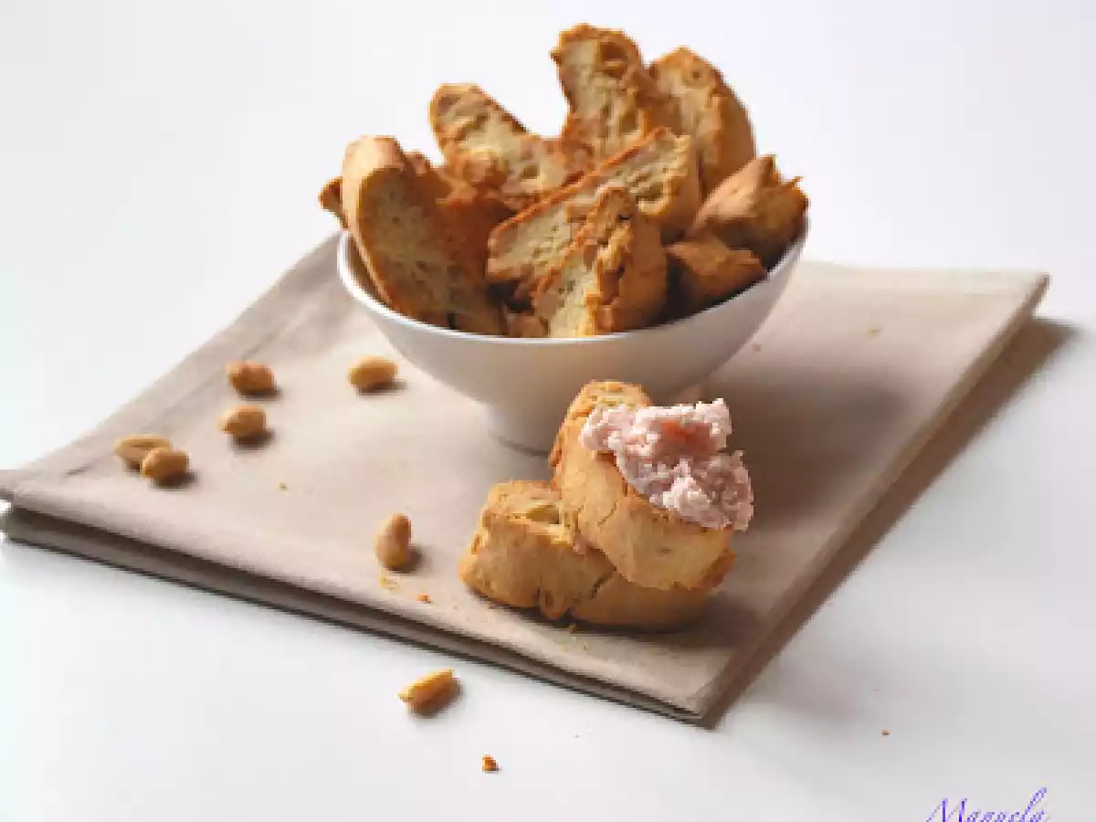 Cantucci salati alle arachidi di l. montersino. PrecedenteProssimo Altrofacile50 min Invia questa ricetta ad un amico Stampa la ricetta Contatta l'autore della Ricetta Pubblica la foto di questa ricetta Ingredienti 3 180 g di burro 50 g di zucchero semolato 75 g di parmigiano grattugiato 25 g di latte in polvere 6 g di sale un pizzico di noce moscata 200 g di uova intere 5 g di lievito chimico 500 g di farina 180 w 250 g di arachidi salate