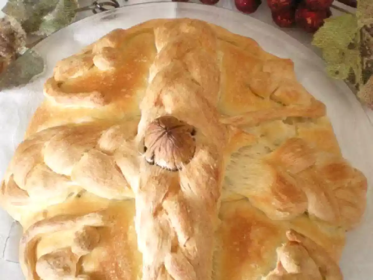 Christopsomo, il pane di natale...e oggi neve!! PrecedenteProssimo Altrofacile50 min Invia questa ricetta ad un amico Stampa la ricetta Contatta l'autore della Ricetta Pubblica la foto di questa ricetta Ingredienti 5 250 g di licoli molto attivo 500 g di farina 0 100 g di semola di grano duro 260-280 g o più di acqua 1 cucchiaio di miele 3 cucchiaini di sale 2 cucchiai di olio extravergine di oliva 1 cucchiaio di semi di anice uovo sbattuto o un po' di latte per spennellare