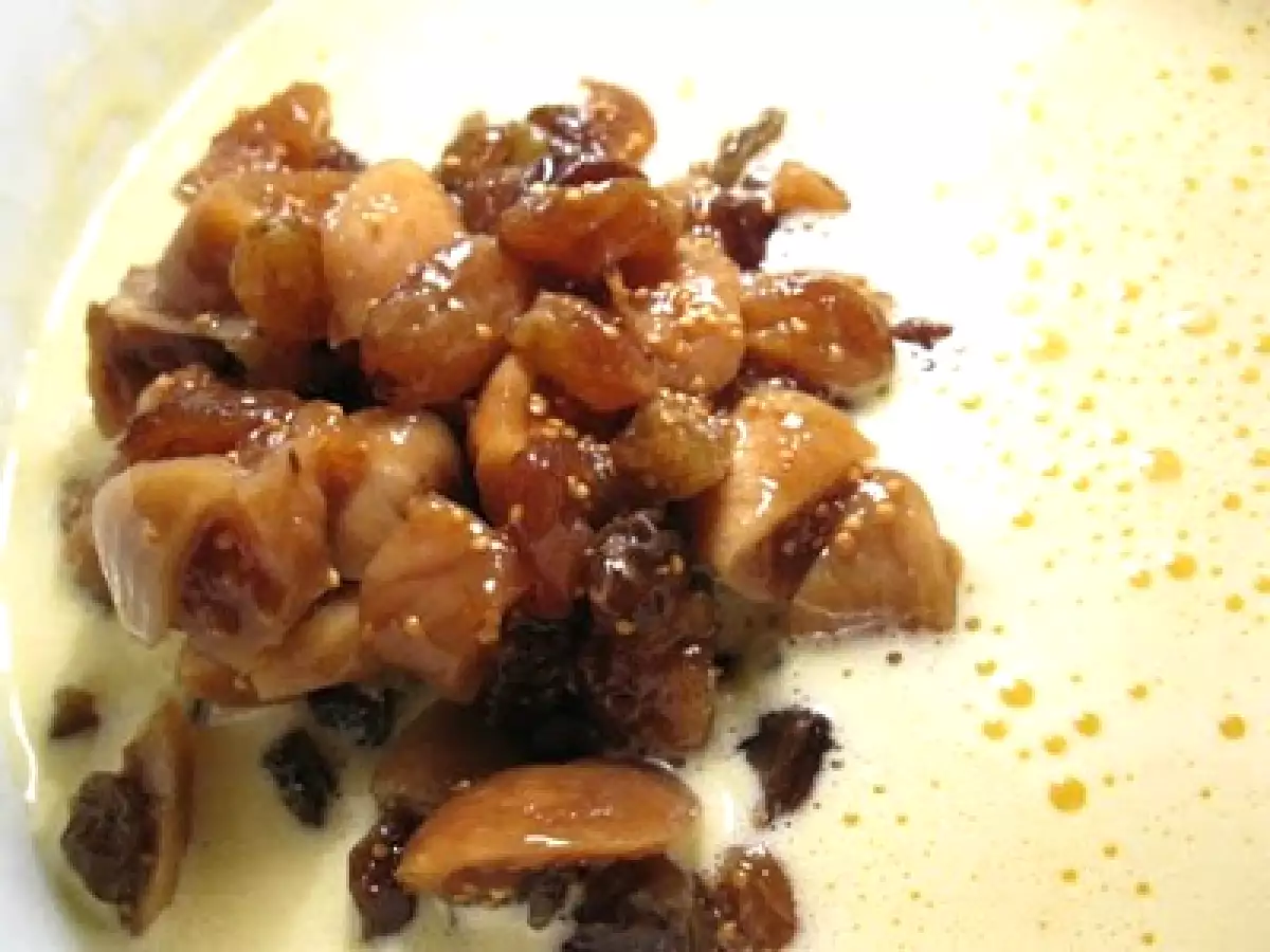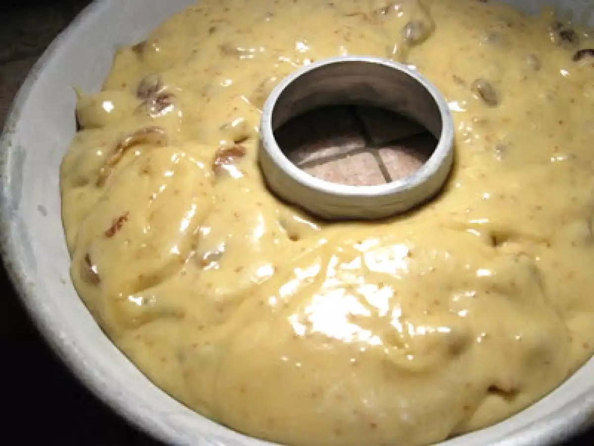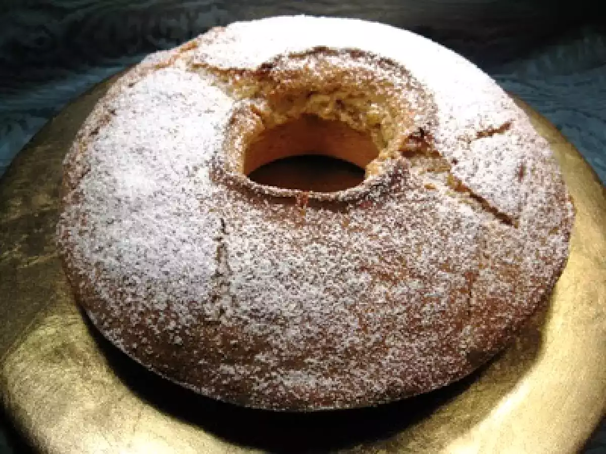 Ciambella con fichi e uvetta PrecedenteProssimo Altrofacile1 h 10 m Invia questa ricetta ad un amico Stampa la ricetta Contatta l'autore della Ricetta Pubblica la foto di questa ricetta Ingredienti 4 100 g di fichi secchi 80 g di uvetta 60 g di brandy per l'ammollo 4 uova 4 cucchiai di acqua bollente 100 g di olio di semi 100 g di latte 250 g di farina 00 150 g di fecola 100 g di zucchero semolato e 50 g di zucchero a velo 1 pizzico di sale 22 g di lievito per dolci 1 bustina di vanillina 1 pizzico di sale