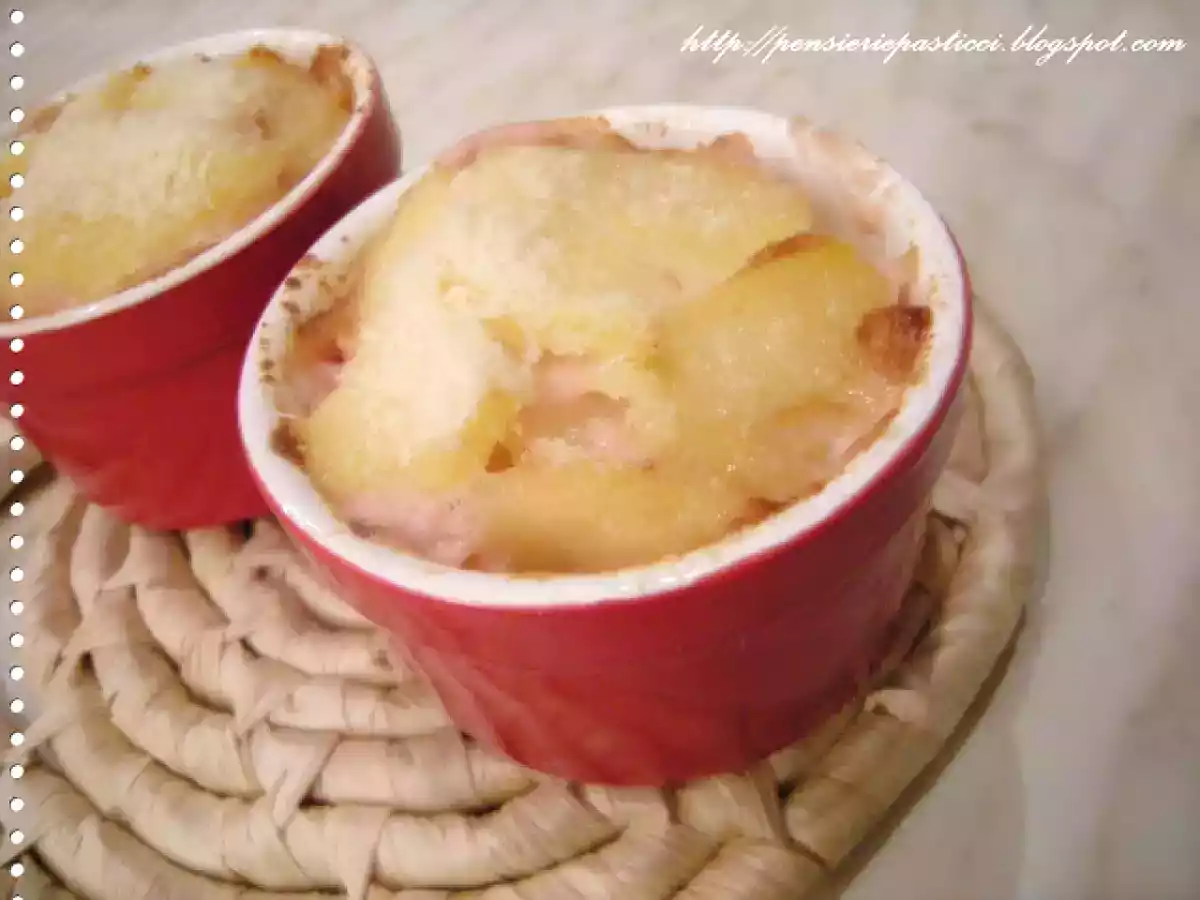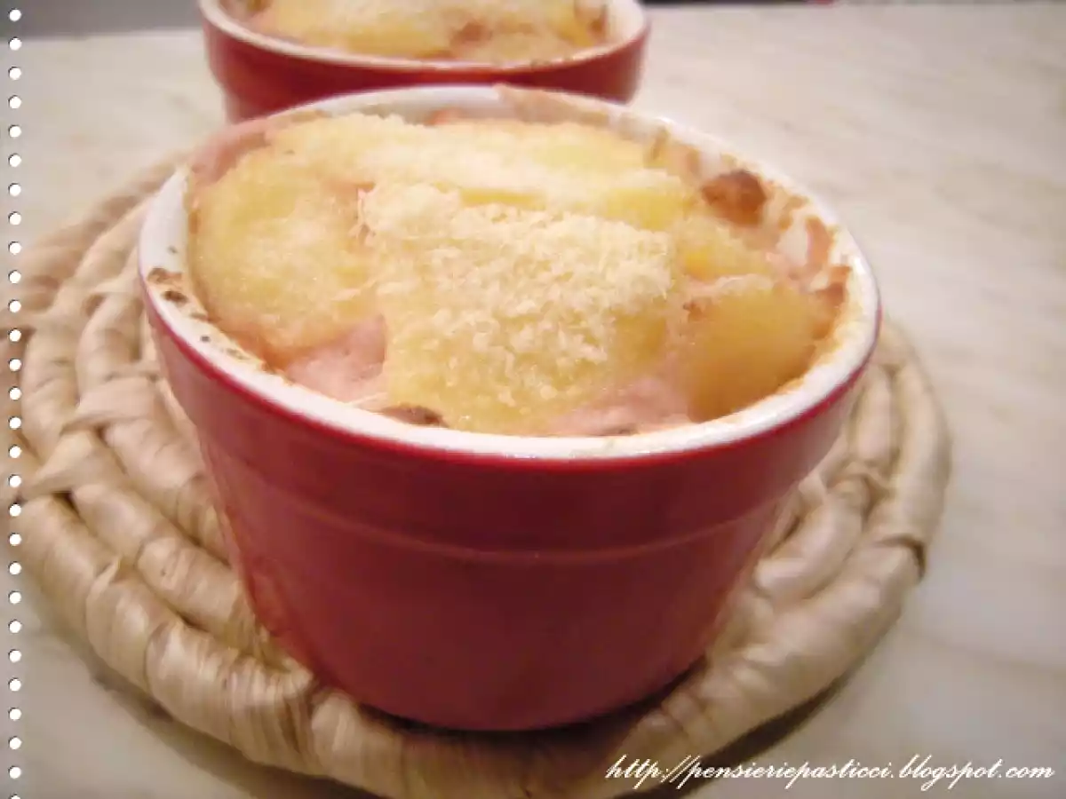 Cocottine di patate alla crema di mortadella, per "mettere radici" PrecedenteProssimo Altrofacile50 min Invia questa ricetta ad un amico Stampa la ricetta Contatta l'autore della Ricetta Pubblica la foto di questa ricetta Ingredienti 2 2 belle patate abbastanza grossine mortadella bologna 150 g philadelphia o formaggio cremoso similare 150 g 50 g parmigiano grattugiato sale pepe q.b un goccio d'olio d'oliva qualche pistacchio sgusciato, non salato burro per ungere le cocotte