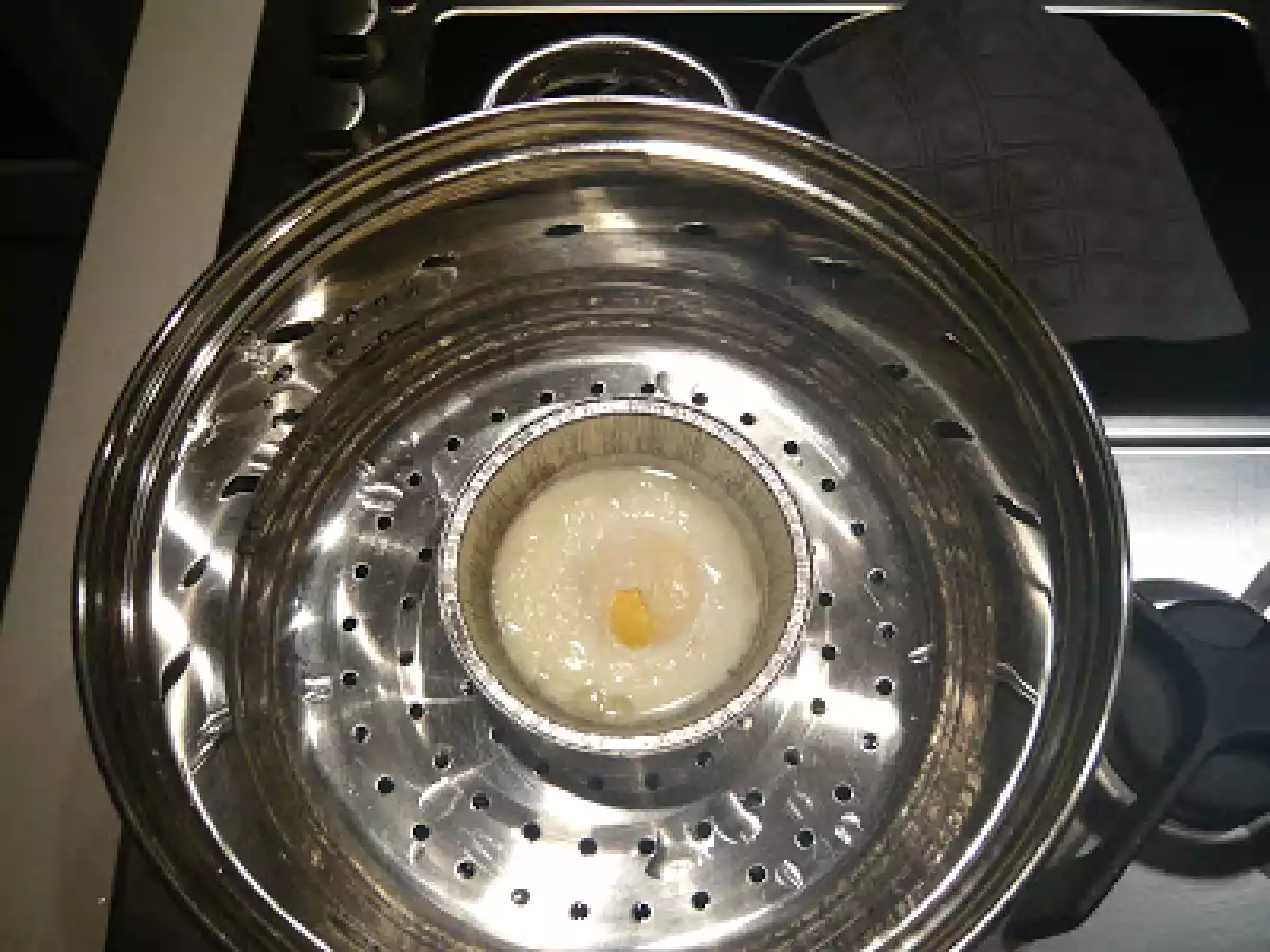 - Posizionare lo stencil con l'uovo in vapore griglia, o sulle verdure griglia sul fondo di una pentola a cui è stato aggiunto un po 'd'acqua. Copertina, accendere il fuoco, e calcola i minuti di cottura dalla formazione di vapore.