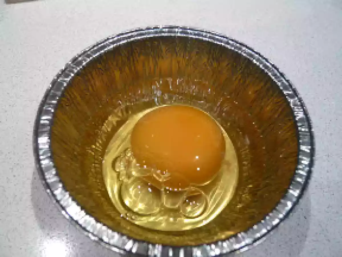 - Sul fondo dello stencil mettere un po 'di olio, poi aggiungere l'uovo sgusciato. Sala.