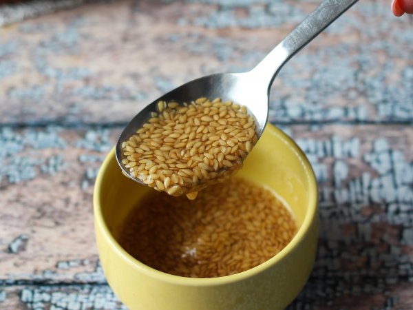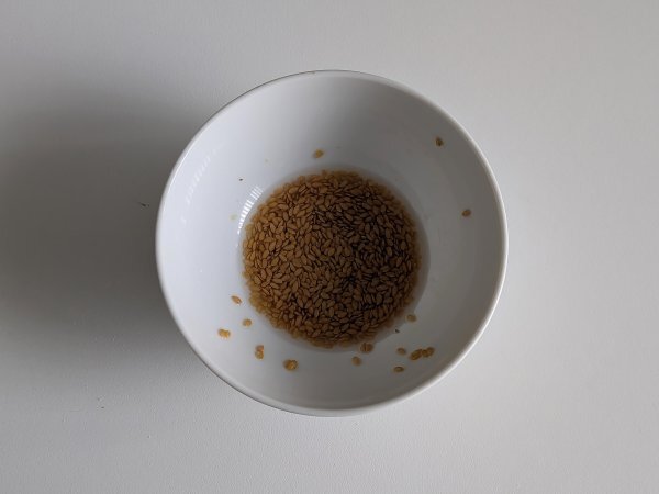 Versare i semi di lino macinati una ciotola e aggiungere l'acqua.