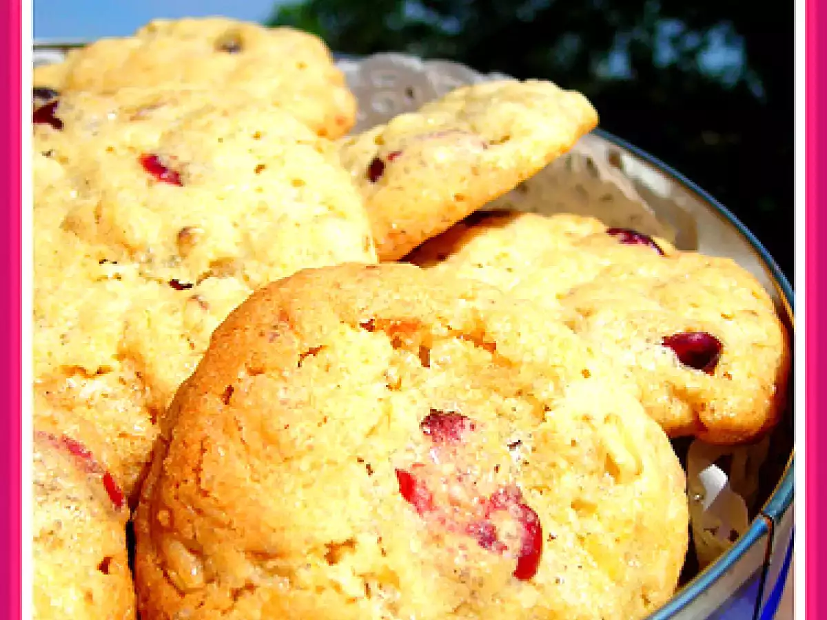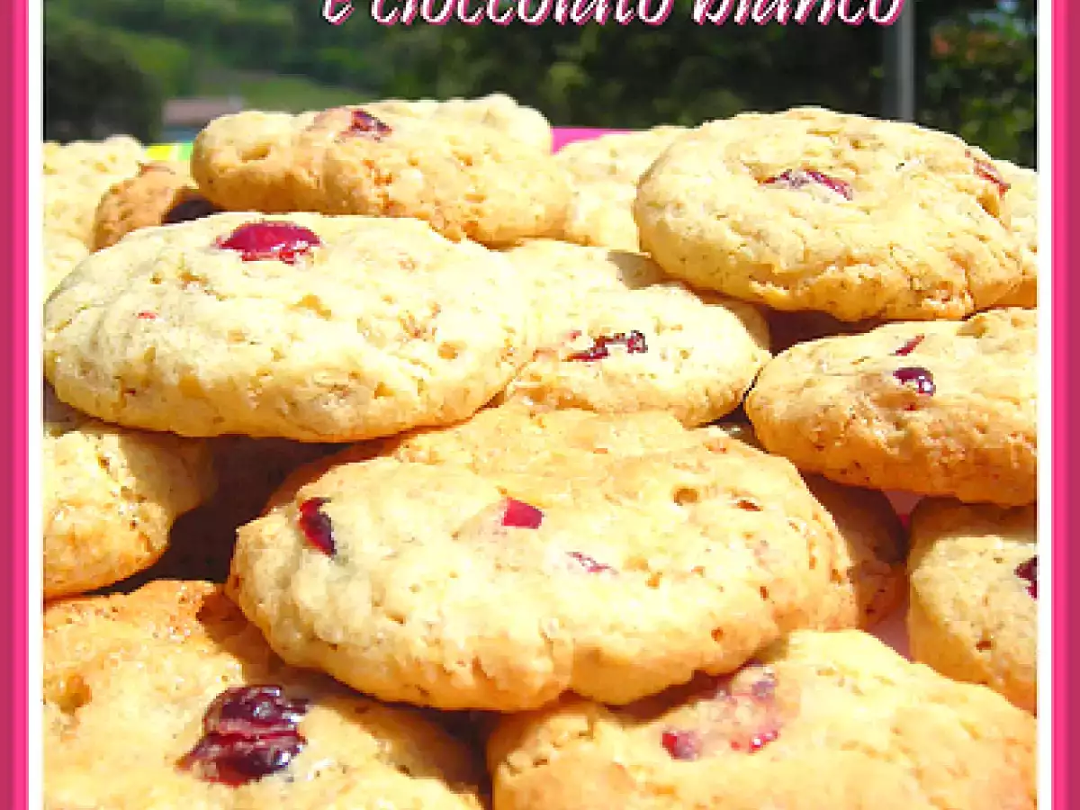 Cookies con cranberries, fiocchi d'avena e cioccolato bianco vota adesso PrecedenteProssimo Altrofacile50 min647 Kcal Invia questa ricetta ad un amico Stampa la ricetta Contatta l'autore della Ricetta Pubblica la foto di questa ricetta Ingredienti 5 150 g di burro ammorbidito 165 g di zucchero di canna 200 g di fiocchi di avena 140 g di gocce di cioccolato bianco Amedei 85 g di mirtilli rossi disidratati 1 uovo 1 stecca di vaniglia 125 g di farina 1 cucchiaino di lievito in polvere per dolci 1 pizzico di sale Costo stimato: 4.54Euros€ (0.91€/Porzioni)