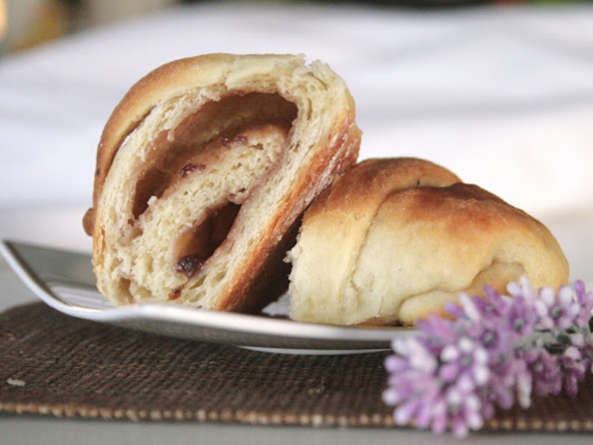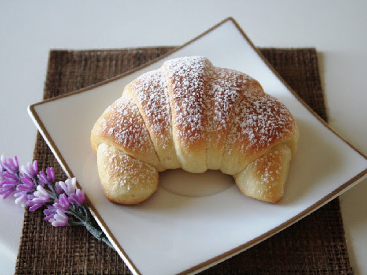 Cornetti brioche alla marmellata! PrecedenteProssimo Altrofacile1 h 10 m621 Kcal Invia questa ricetta ad un amico Stampa la ricetta Contatta l'autore della Ricetta Pubblica la foto di questa ricetta Ingredienti 5 250 g di farina manitoba 250 g di farina 00 140 g di acqua 20 g di lievito 100 g di burro ammorbidito 2 uova 90 g di zucchero 5 g di sale vanillina buccia grattata di un limone o di una arancia Costo stimato: 2.34Euros€ (0.47€/Porzioni)