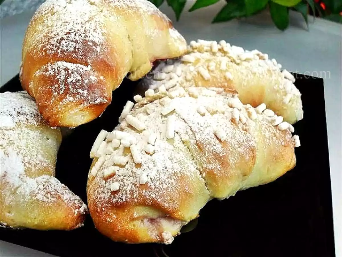 Cornetti brioche per la colazione PrecedenteProssimo Altrofacile50 min815 Kcal Invia questa ricetta ad un amico Stampa la ricetta Contatta l'autore della Ricetta Pubblica la foto di questa ricetta Una ricetta deliziosa per preparare dei cornetti unici Ingredienti 4 500 gr di farina 00 125 gr di zucchero 125 ml di latte tiepido 60 ml di olio un cubetto di lievito di birra (25 gr) 2 uova Inoltre : Un tuorlo e latte un cucchiaio di miele per spennellare Marmellata Nutella o altra farcitura a piacere Costo stimato: 1.6Euros€ (0.4€/Porzioni)