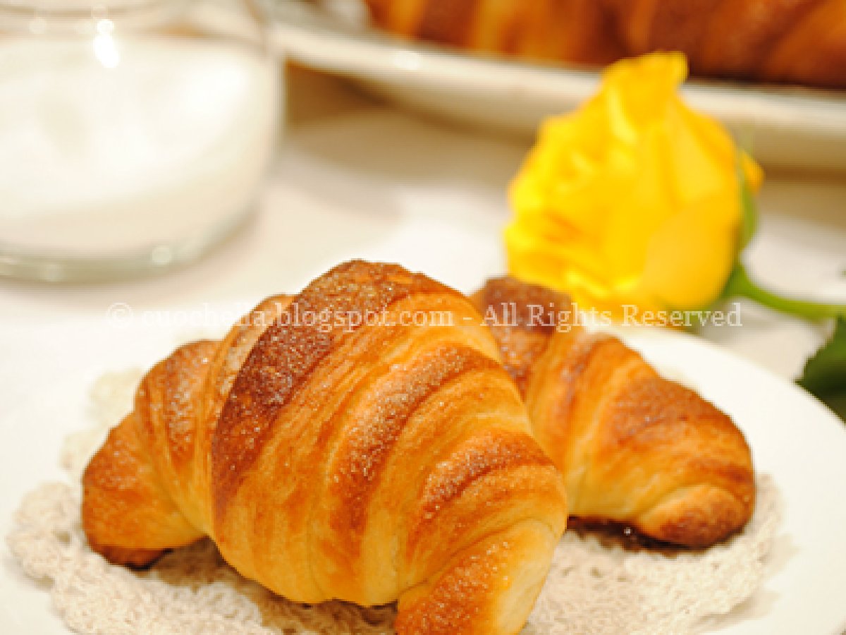 Cornetti del bar Altrofacile3 h 15 m1165 Kcal Invia questa ricetta ad un amico Stampa la ricetta Contatta l'autore della Ricetta Pubblica la foto di questa ricetta Ingredienti 4 Per l'impasto: 250 g farina 00 250 g farina manitoba 100 g zucchero 150 g acqua 70 g latte intero 30 g burro 1 uovo 8 g sale 20 g scorza d'arancia candita 1 bustina lievito di birra secco Per sfogliare: 270 g burro Per rifinire: 1 uovo 10 g latte zucchero semolato Costo stimato: 3.87Euros€ (0.97€/Porzioni)