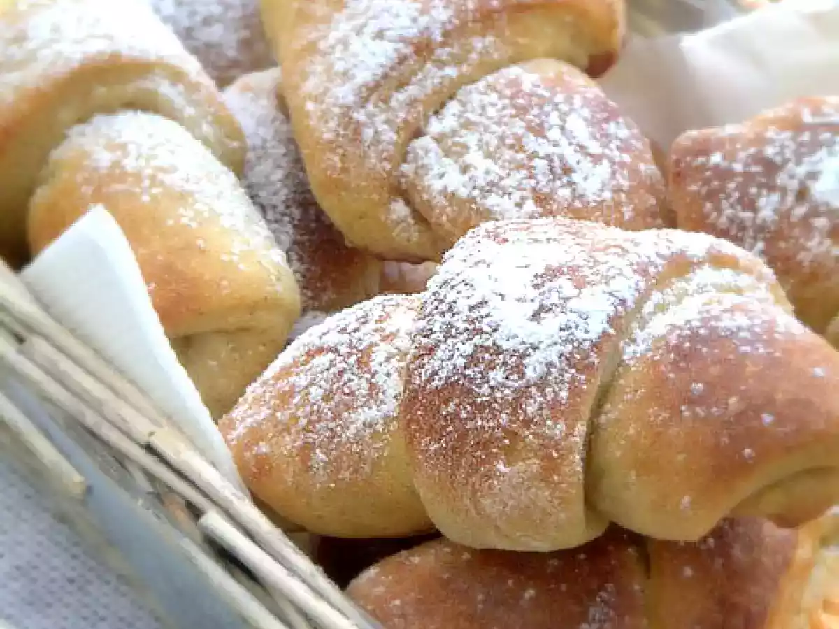 Già dalla fotografia si riesce a capire quanto siano buoni questi cornetti. Volete Provarli anche voi? Seguite il procedimento spiegato passo a passo!