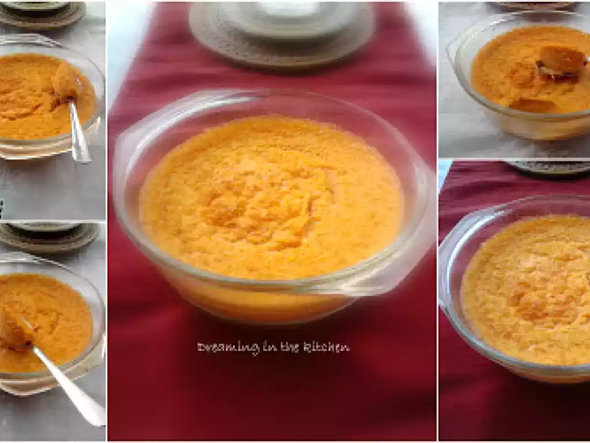 Crema cotta alle carote - extra light PrecedenteProssimo Altrofacile50 min Invia questa ricetta ad un amico Stampa la ricetta Contatta l'autore della Ricetta Pubblica la foto di questa ricetta Ingredienti 4 1 tazza di carote a rondelle 4 albumi 1/2 tazza latte di soia light 2 cucchiai amido di mais 1 cucchiaio farina di mandorle 35 gocce dolcificante "TIC" zero calorie 1/2 cucchiaino vaniglia aroma 1/4 cucchiaino chiodi di garofano in polvere 1/4 cucchiaino cannella in polvere 1 cucchiaino buccia di limone grattugiata, fresca