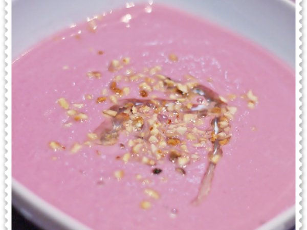 Crema di cavolfiore viola e nocciole al quadrato vota adesso PrecedenteProssimo Altrofacile45 min148 Kcal Invia questa ricetta ad un amico Stampa la ricetta Contatta l'autore della Ricetta Pubblica la foto di questa ricetta Ingredienti 2 1/2 cavolfiore viola 3 scalogni piccoli brodo vegetale qb 1/2 bicchiere di kefir sale nocciole tritate olio di nocciole