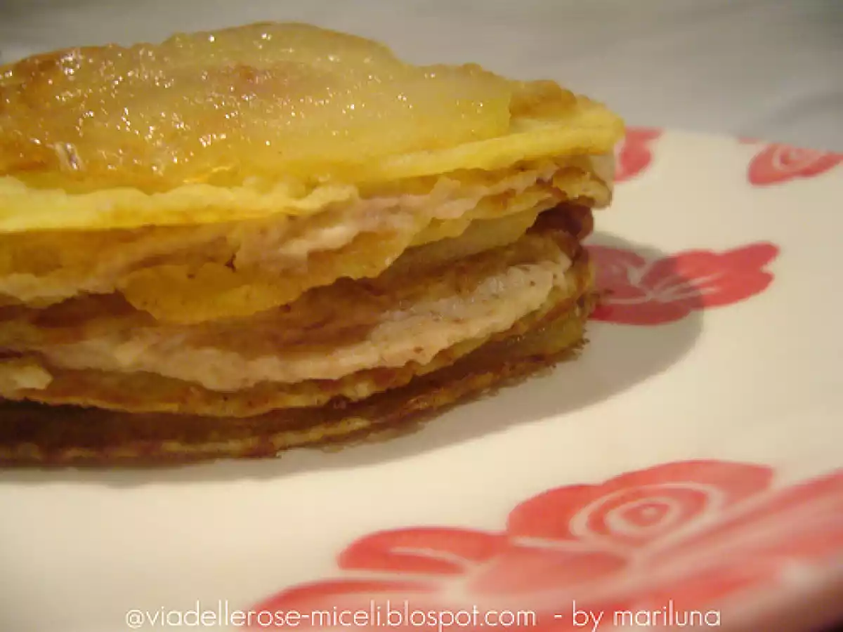 Crépes con farina di ceci, pere caramellate al miele....... PrecedenteProssimo Altromedia2 h 30 m Invia questa ricetta ad un amico Stampa la ricetta Contatta l'autore della Ricetta Pubblica la foto di questa ricetta Gusto ha queste piccole frittelle fatte in casa. Ingredienti 10 60 g di farina di ceci 1 uovo 125 g di latte 15 g di zucchero 1 bacello di vaniglia bourbon 1 pizzico di sale Per la crema 100 g di mascarpone 20 g di amaretti un cucchiaio di cognac per le pere caramellate 2 pere conferenza non troppo matura 4 cucchiai di miele d'acacia o millefiori 2 limoni non trattati