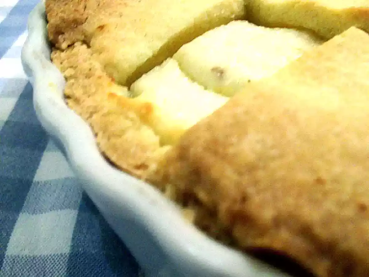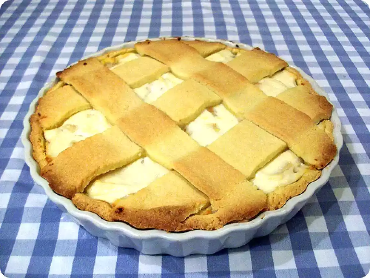 Crostata di ricotta e pere al profumo di limone PrecedenteProssimo Altrofacile1 h 10 m Invia questa ricetta ad un amico Stampa la ricetta Contatta l'autore della Ricetta Pubblica la foto di questa ricetta Ingredienti 3 1) Per La Frolla : 250 g di burro freddo a pezzetti 500 g di farina 00 150 g di zucchero 1 uovo + 3 tuorli 1 pizzico di sale 2) Per la farcia : 400 g di ricotta di mucca 5 pere kaiser 70 g zucchero La scorza di 1 limone