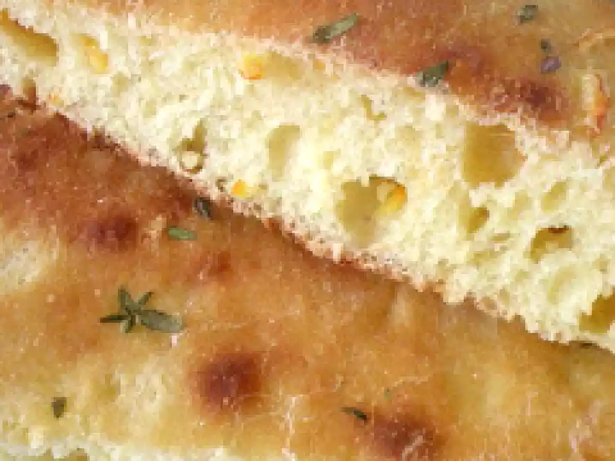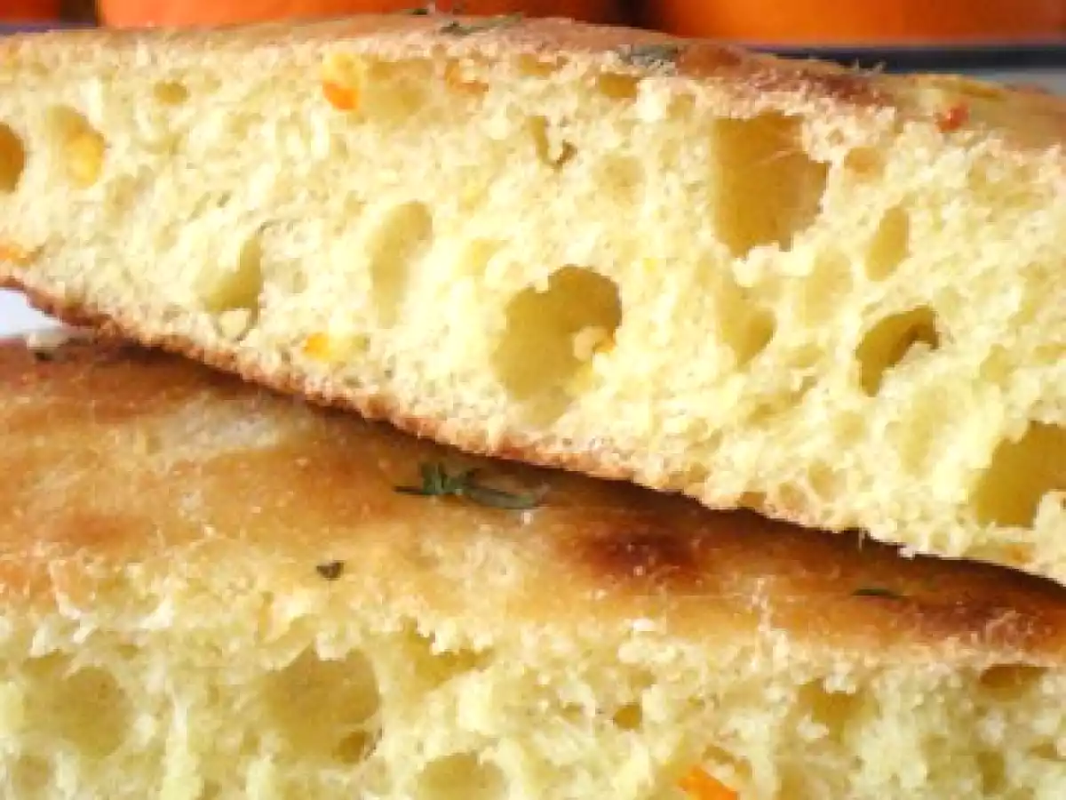 Da una focaccia all'arancia ai finger food! PrecedenteProssimo Altrofacile40 min189 Kcal Invia questa ricetta ad un amico Stampa la ricetta Contatta l'autore della Ricetta Pubblica la foto di questa ricetta Ingredienti 6 215 g di manitoba 15 g di farina gialla per polenta 180 g di succo d'arancia fresco 2-3 scorzette di arancia tagliate finemente 4 g di lievito di birra fresco 1 cucchiaino da tè di miele 4 g di sale 10 g di burro timo olio extravergine di oliva Costo stimato: 2.14Euros€ (0.36€/Porzioni)