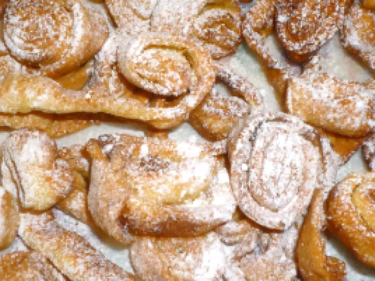 Domenica di carnevale in compagnia delle tagliatelle dolci fritte vota adesso PrecedenteProssimo Altrofacile45 min332 Kcal Invia questa ricetta ad un amico Stampa la ricetta Contatta l'autore della Ricetta Pubblica la foto di questa ricetta Ingredienti 4 200 g di farina 2 uova 1 pizzico di sale 4 cucchiai di zucchero 1 cucchiaio di vino liquoroso la buccia grattugiata di un limone biologico l succo di mezzo limone piccolo olio di arachidi Costo stimato: 1.38Euros€ (0.34€/Porzioni)
