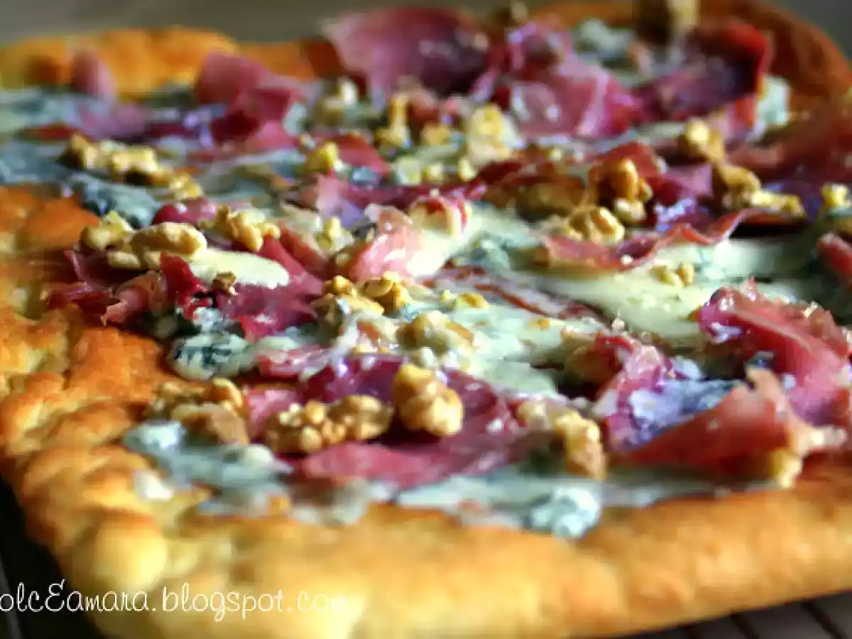 Focaccia con gorgonzola e noci vota adesso Altrofacile1 ora Invia questa ricetta ad un amico Stampa la ricetta Contatta l'autore della Ricetta Pubblica la foto di questa ricetta Ingredienti 4 500 g di farina manitoba 350 ml circa di acqua tiepida 25 g di lievito ( un cubetto) 2 cucchiaini colmi di sale fino 1 cucchiaino di zucchero 2 cucchiai di olio evo 150 g di gorgonzola piccante o dolce se preferite - gusti meno decisi circa 50 g di gherigli di noci spezzettati 100 g di prosciutto crudo dolce
