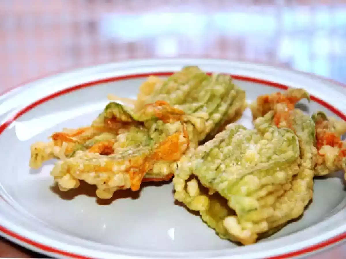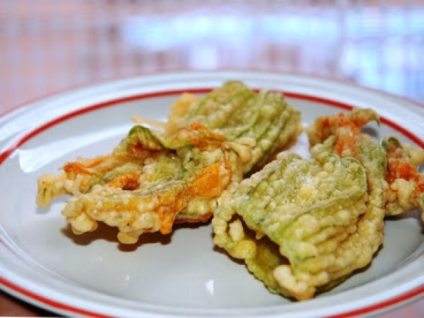 - Nel frattempo togliere i pistilli dai fiori poi lavarli e asciugarli bene, passata la mezzora rimescolare bene la pastella e immergervi dentro i fiori, quindi friggerli in Olio extravergine di oliva (EVO) ben caldo.