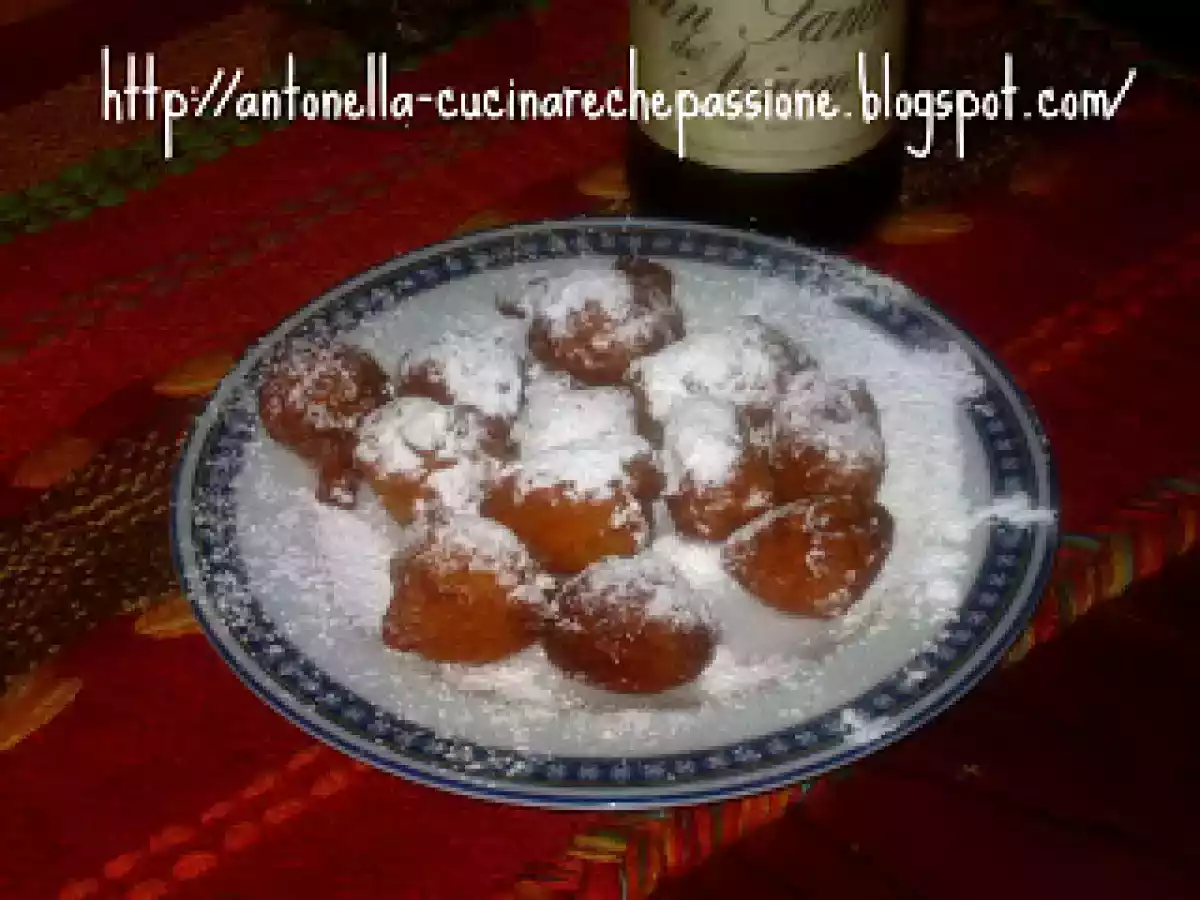 - Friggere in abbondante olio.Scolare le frittelle e cospargerle con zucchero a velo.