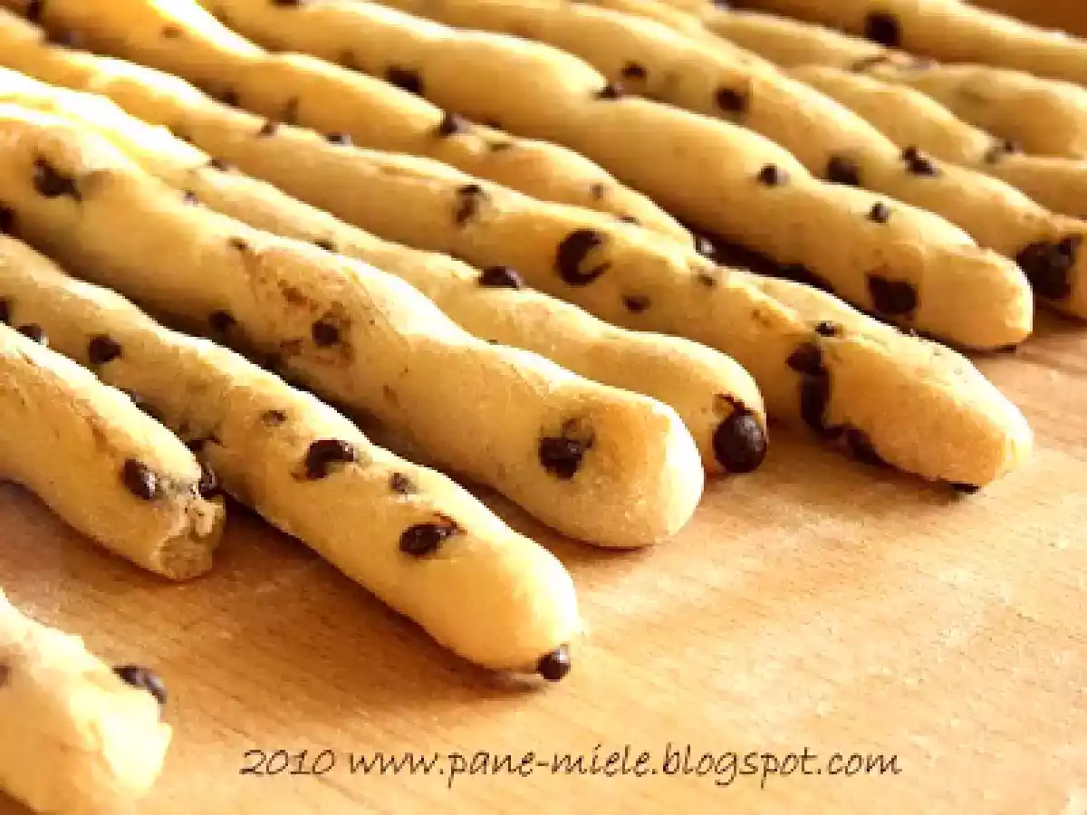 Grissini al cioccolato vota adesso PrecedenteProssimo Altrofacile45 min353 Kcal Invia questa ricetta ad un amico Stampa la ricetta Contatta l'autore della Ricetta Pubblica la foto di questa ricetta Ingredienti 6 420 gr di farina 00 8 gr di lievito di birra secco 220 ml di acqua 120 gr di cioccolato in pastigliette piccole 10 gr di sale un cucchiaino scarso di miele Costo stimato: 1.65Euros€ (0.27€/Porzioni)