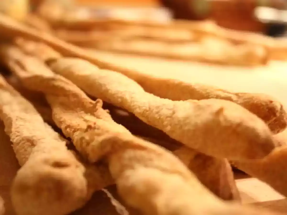 - Prendo il coltello e taglio i grissini dal lato corto, ottenendo dei cilindretti lunghi circa 20 centimetri.
