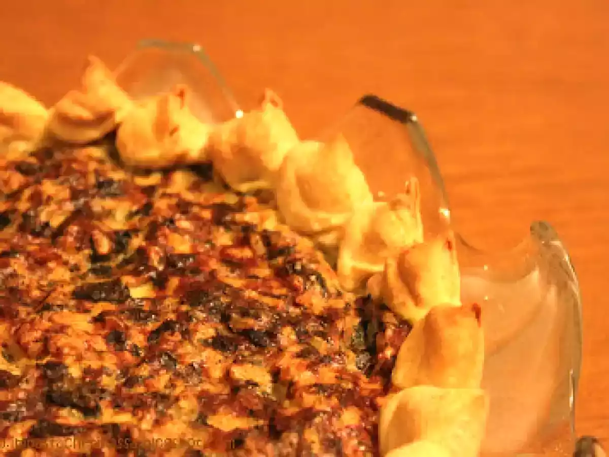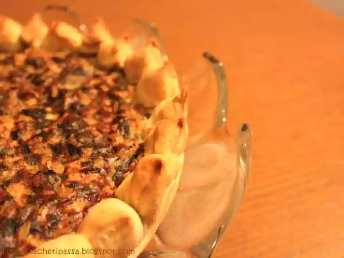 La torta co' pizzi (deborah) PrecedenteProssimo Altrofacile1 ora Invia questa ricetta ad un amico Stampa la ricetta Contatta l'autore della Ricetta Pubblica la foto di questa ricetta Ingredienti 3 1) Per la sfoglia : farina 00 300 g acqua q.b. sale q.b. olio q.b 2) riso Roma 150 g ricotta di pecora 250 g parmigiano grattugiato 75 g pecorino Romano grattugiato 75 g uova n°2 latte freddo q.b. bieta lessata n° 2 pallette noce moscata q.b sale q.b. pepe q.b.
