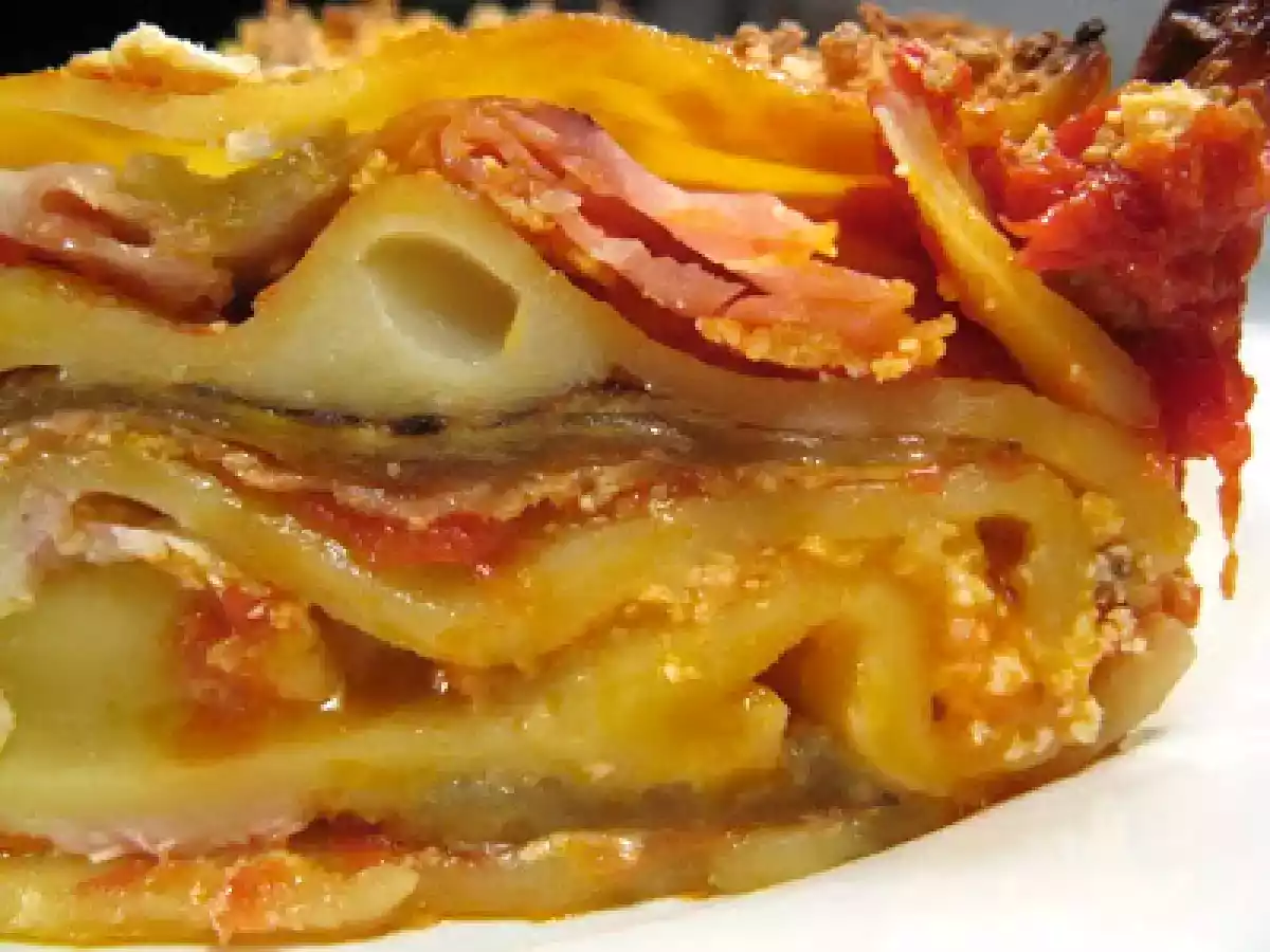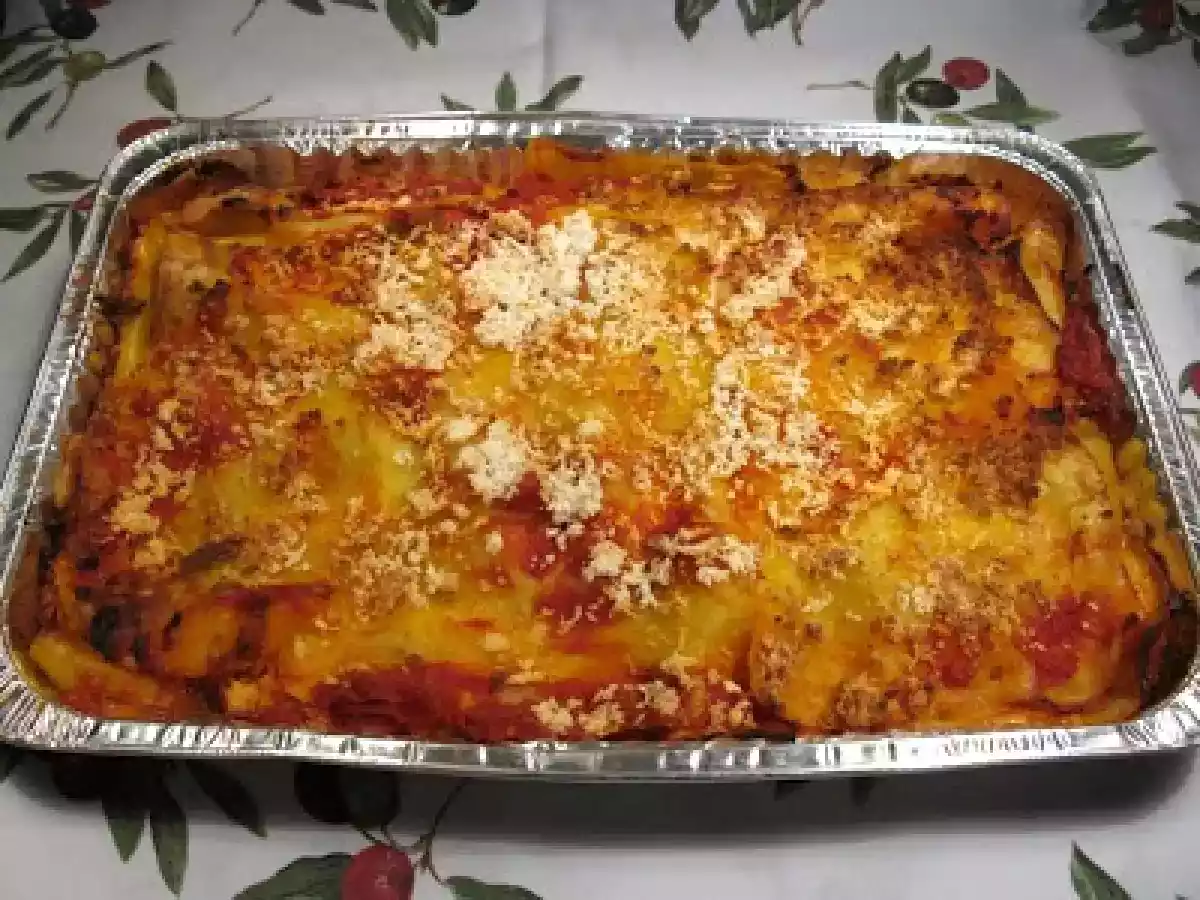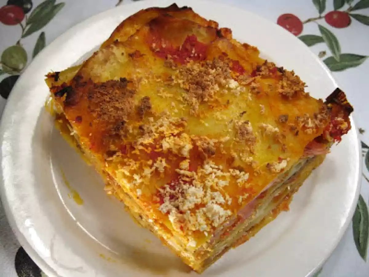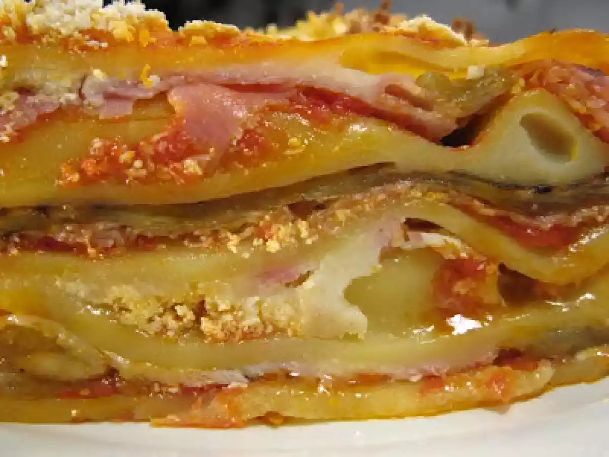Lasagne estive alla ricca PrecedenteProssimo Altromedia1 h 40 m Invia questa ricetta ad un amico Stampa la ricetta Contatta l'autore della Ricetta Pubblica la foto di questa ricetta Ricette di lasagna estivi al ricco. Ingredienti 12 Per il sugo 1 cipolla di medie dimensioni o come nel mio caso 4/5 cipollotti 3/4 grossi pomodori da sugo 1 cucchiaio di concentrato di pomodoro 1/2 cucchiaino di zucchero Sale q.b ed eventualmente peperoncino se gradito 5 sfoglie di pasta fresca 1 grossa melanzana 250 g di mozzarella volendo si possono usare avanzi di formaggi 200 g di prosciutto cotto
