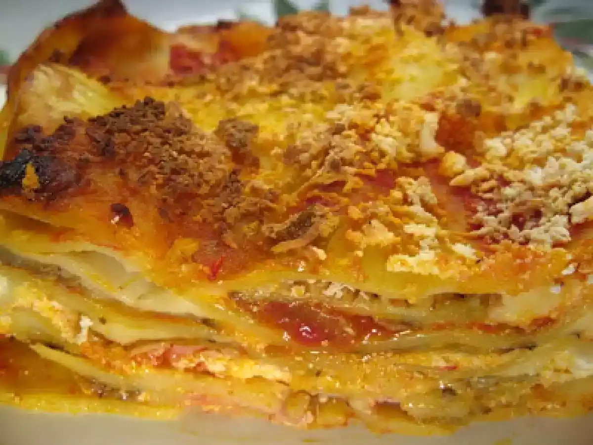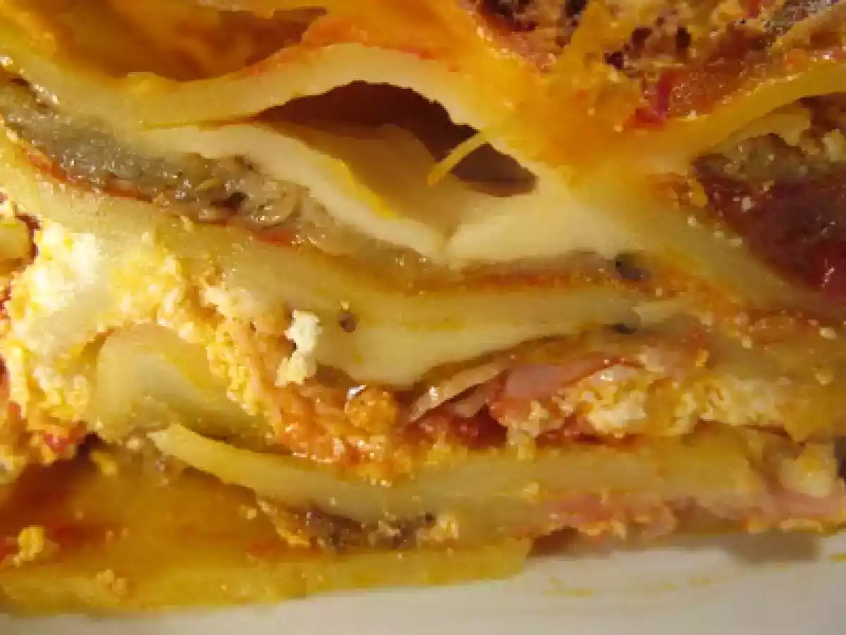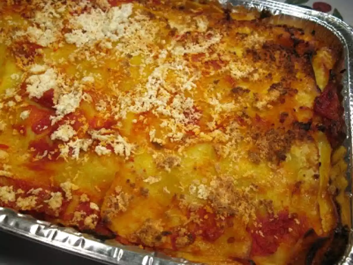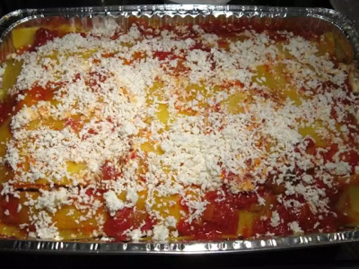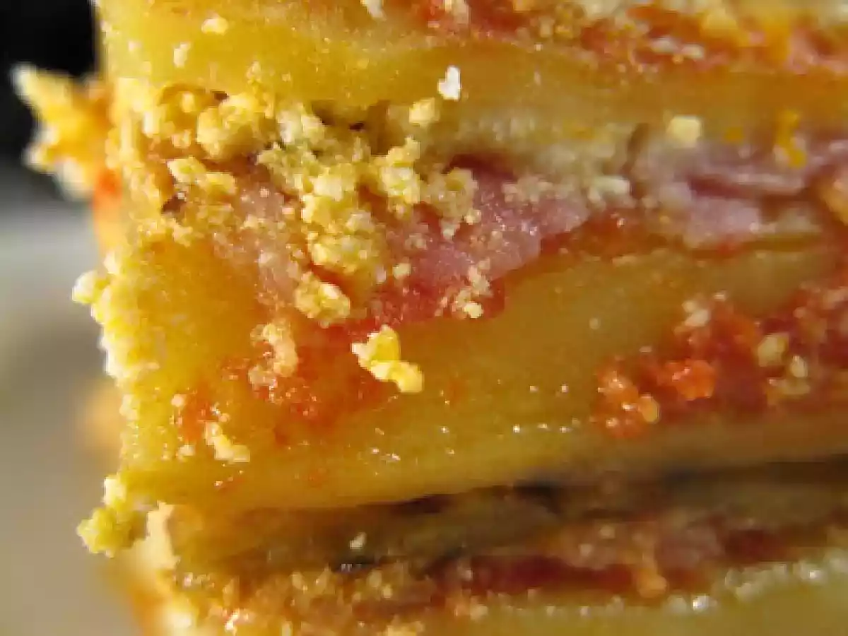 Lasagne estive alla ricca PrecedenteProssimo Altromedia1 h 40 m Invia questa ricetta ad un amico Stampa la ricetta Contatta l'autore della Ricetta Pubblica la foto di questa ricetta Ricette di lasagna estivi al ricco. Ingredienti 12 Per il sugo 1 cipolla di medie dimensioni o come nel mio caso 4/5 cipollotti 3/4 grossi pomodori da sugo 1 cucchiaio di concentrato di pomodoro 1/2 cucchiaino di zucchero Sale q.b ed eventualmente peperoncino se gradito 5 sfoglie di pasta fresca 1 grossa melanzana 250 g di mozzarella volendo si possono usare avanzi di formaggi 200 g di prosciutto cotto