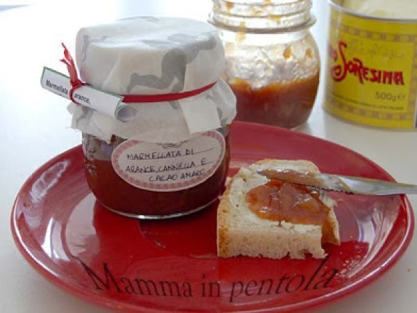 Marmellata di arance, cannella e cacao amaro vota adesso PrecedenteProssimo Altrofacile1 ora354 Kcal Invia questa ricetta ad un amico Stampa la ricetta Contatta l'autore della Ricetta Pubblica la foto di questa ricetta Ingredienti 8 800 g di arance bio acqua q.b. 400 g di zucchero semolato 200 g di zucchero di canna 1 cucchiaio scarso di cannella 1 cucchiaio di cacao amaro una presa di sale Costo stimato: 3.26Euros€ (0.41€/Porzioni)