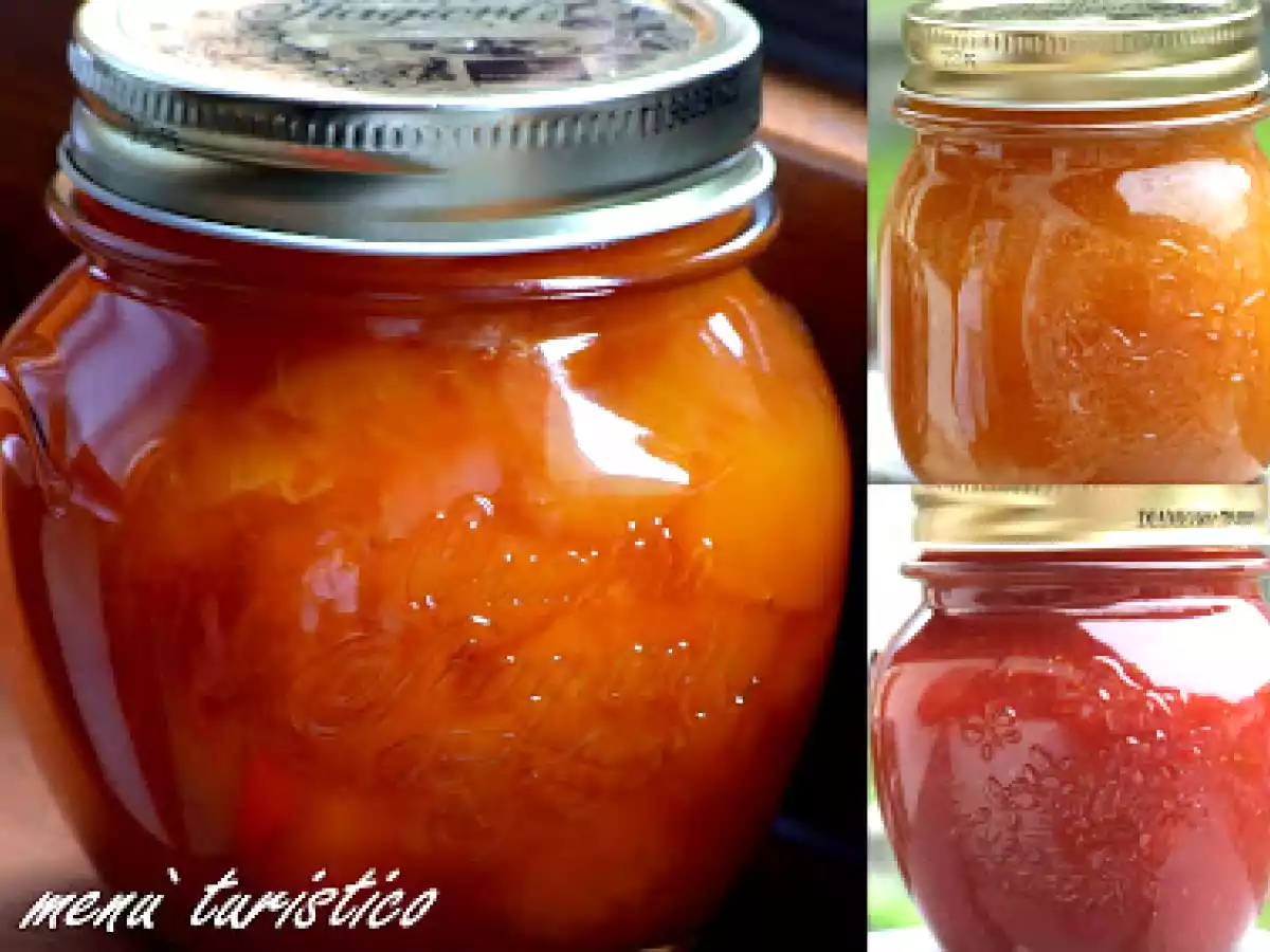 Marmellata di pesche, di fragole e arance e confettura di pesche