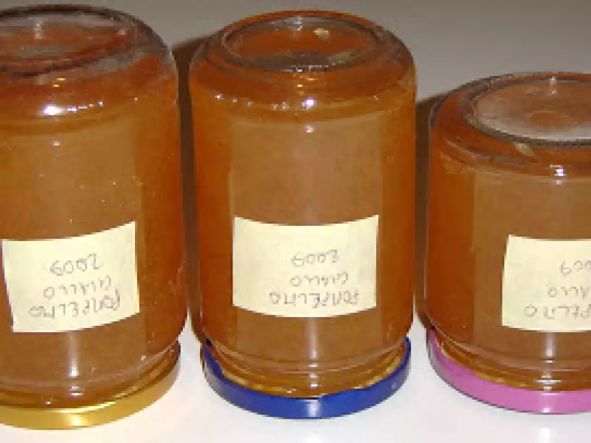 Versate subito la marmellata nei vasi sterilizzati, chiudeteli e capovolgeteli fino a che si sono raffreddati. - Questo tipo di marmellata risulta molto liquida quando è bollente ma una volta raffreddata, dopo 24 ore circa, si gelatifica come le altre.