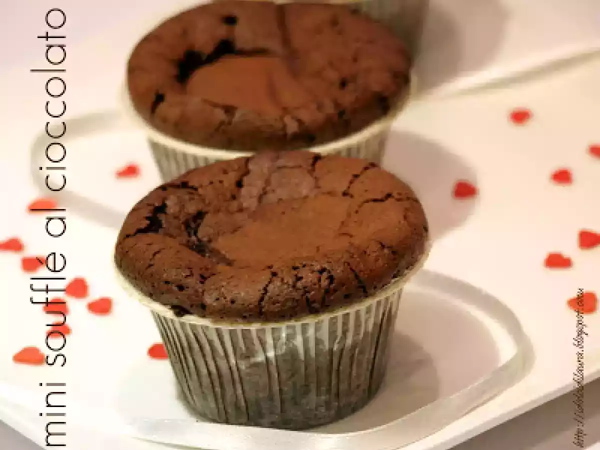 Mini soufflé al cioccolato vota adesso PrecedenteProssimo Altrofacile35 min546 Kcal Invia questa ricetta ad un amico Stampa la ricetta Contatta l'autore della Ricetta Pubblica la foto di questa ricetta Ingredienti 6 200 g di cioccolato fondente, 60 g di cacao amaro, 200 g di zucchero, 4 uova, 120 g di burro, zucchero a velo Costo stimato: 4.06Euros€ (0.68€/Porzioni)