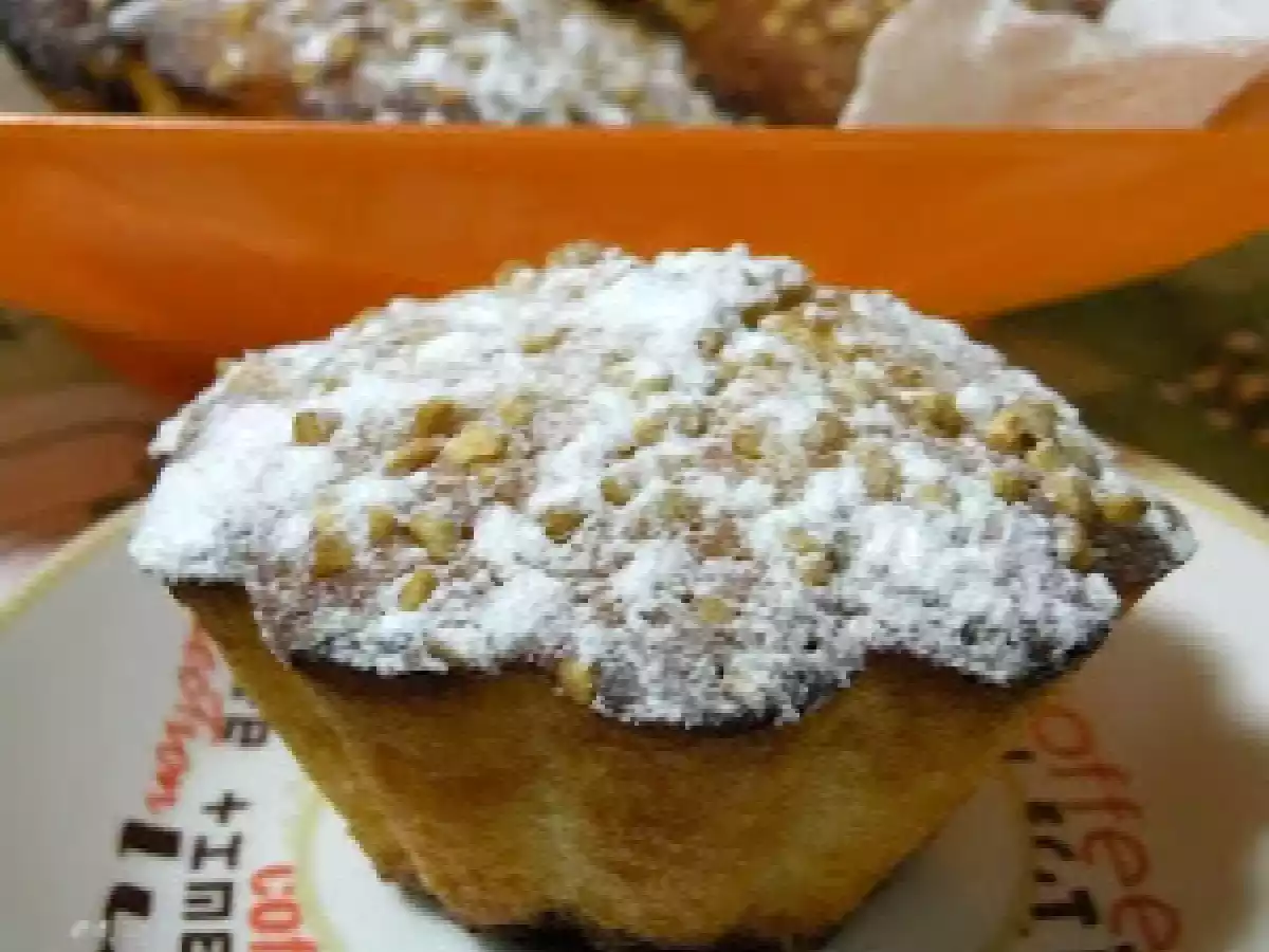 Muffin agli agrumi vota adesso PrecedenteProssimo Altrofacile50 min Invia questa ricetta ad un amico Stampa la ricetta Contatta l'autore della Ricetta Pubblica la foto di questa ricetta Ingredienti 2 Farina 120 g Lievito 1/2 bustina Zucchero 45 g Burro 60 g Uova 1 Succo di limone 75 ml Polvere d'arancia 3 cucchiaini colmi Sale un pizzico Granella di nocciole per decorare