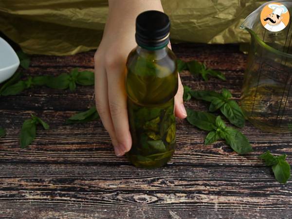 Lasciate in macerazione il basilico per 30 giorni in un luogo buio ed asciutto. Passato questo tempo filtrate l'olio ed eliminate la foglie di basilico. Pronto!