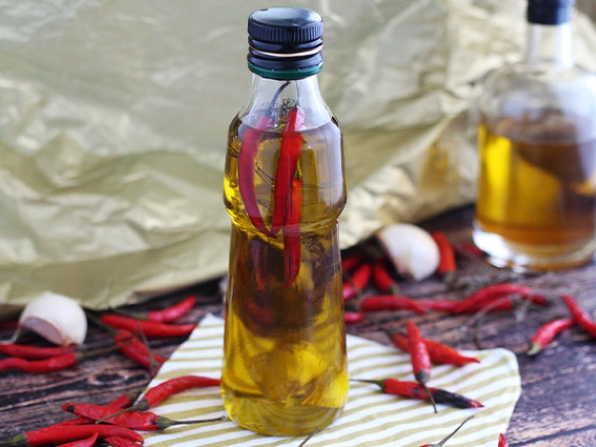 Se avete fretta, mettete gli ingredienti nell'olio caldo a fuoco lento per 5 minuti. Lasciate che si raffreddi ed imbottigliatelo, quindi conservate per 1 settimana in un luogo secco e buio.