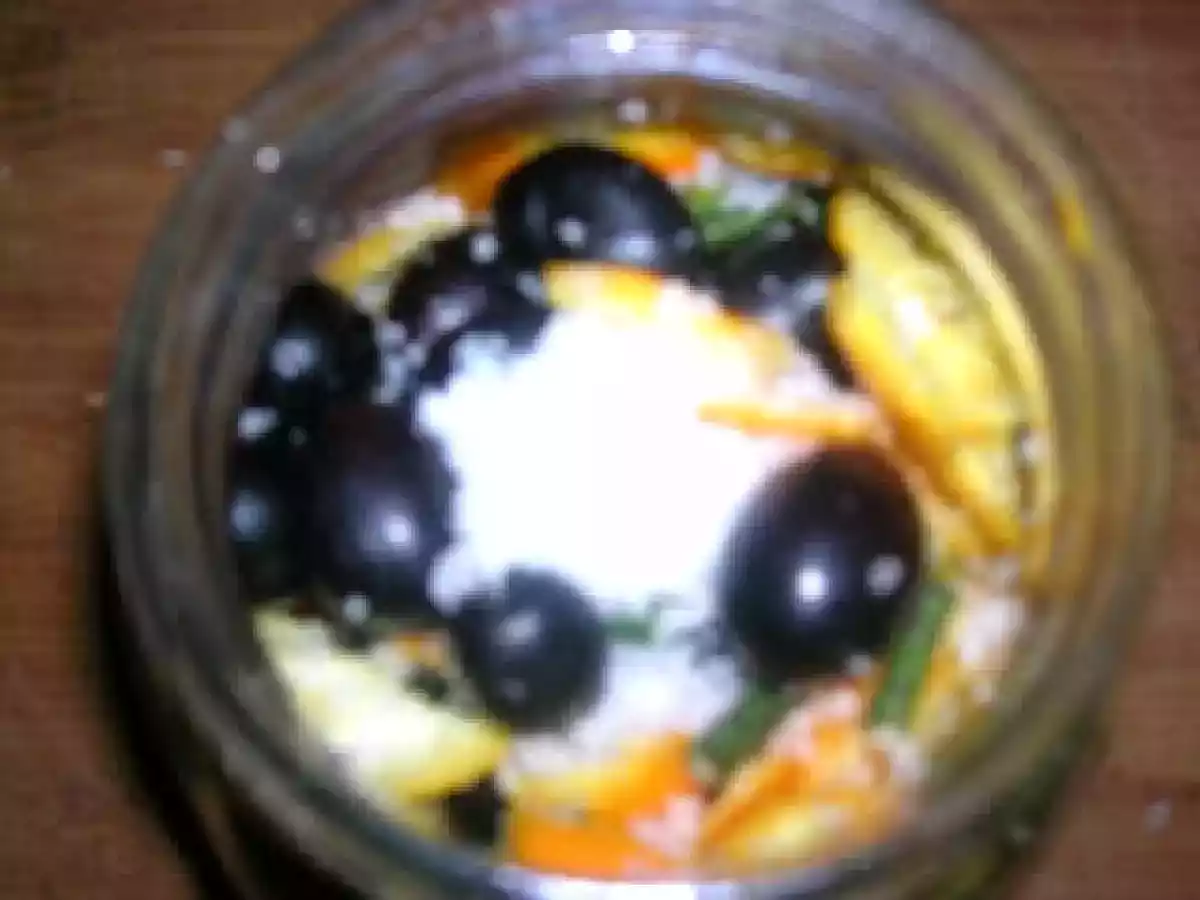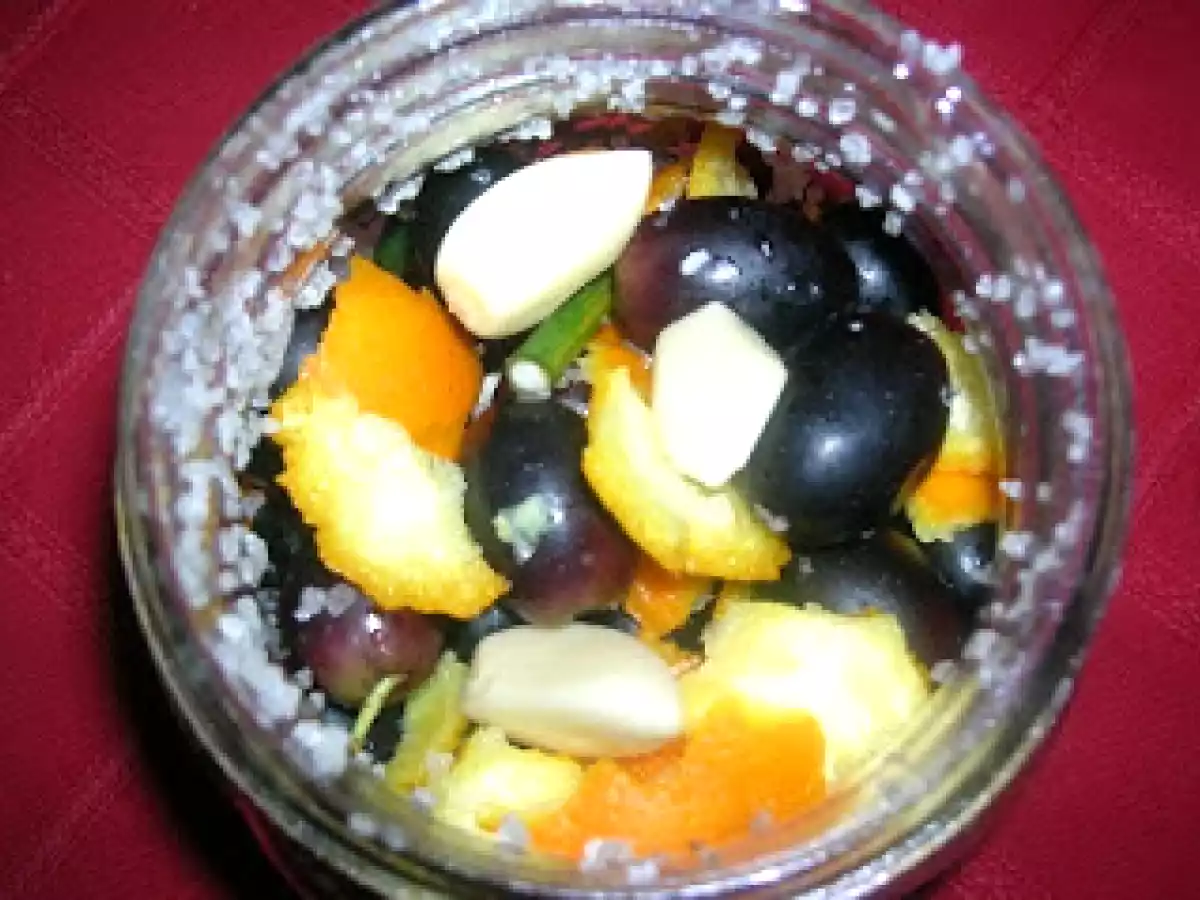 Olive nere marinate PrecedenteProssimo Altrofacile55 min39 Kcal Invia questa ricetta ad un amico Stampa la ricetta Contatta l'autore della Ricetta Pubblica la foto di questa ricetta Ingredienti 4 Olive nere Sale grosso Aglio Finocchio selvatico Scorza di arance Costo stimato: 0.96Euros€ (0.24€/Porzioni)