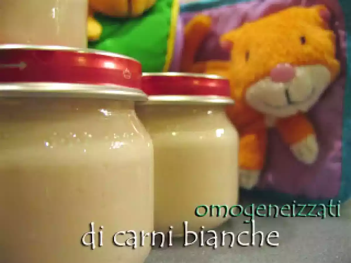 - Cuocere per 5' circa l'omogeneizzato sul fuoco, quindi invasare in vasetti di vetro e chiudere, quando raffreddati si possono congelare e tenere pronti all'uso previo scongelamento a temperatura ambiante o in frigorifero
