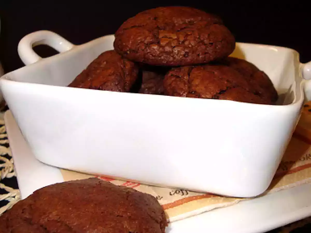 Outrageous chocolate cookies di martha stewart PrecedenteProssimo Altrofacile50 min1228 Kcal Invia questa ricetta ad un amico Stampa la ricetta Contatta l'autore della Ricetta Pubblica la foto di questa ricetta Ingredienti 3 230 gr di cioccolato fondente 60 gr di burro 110 gr di farina ½ cucchiaino di lievito per dolci ½ cucchiaino di sale 2 uova grandi 150 g de zucchero di canna 1 cucchiaino di estratto di vaniglia 170 g di gocce di cioccolato Costo stimato: 5.33Euros€ (1.78€/Porzioni)
