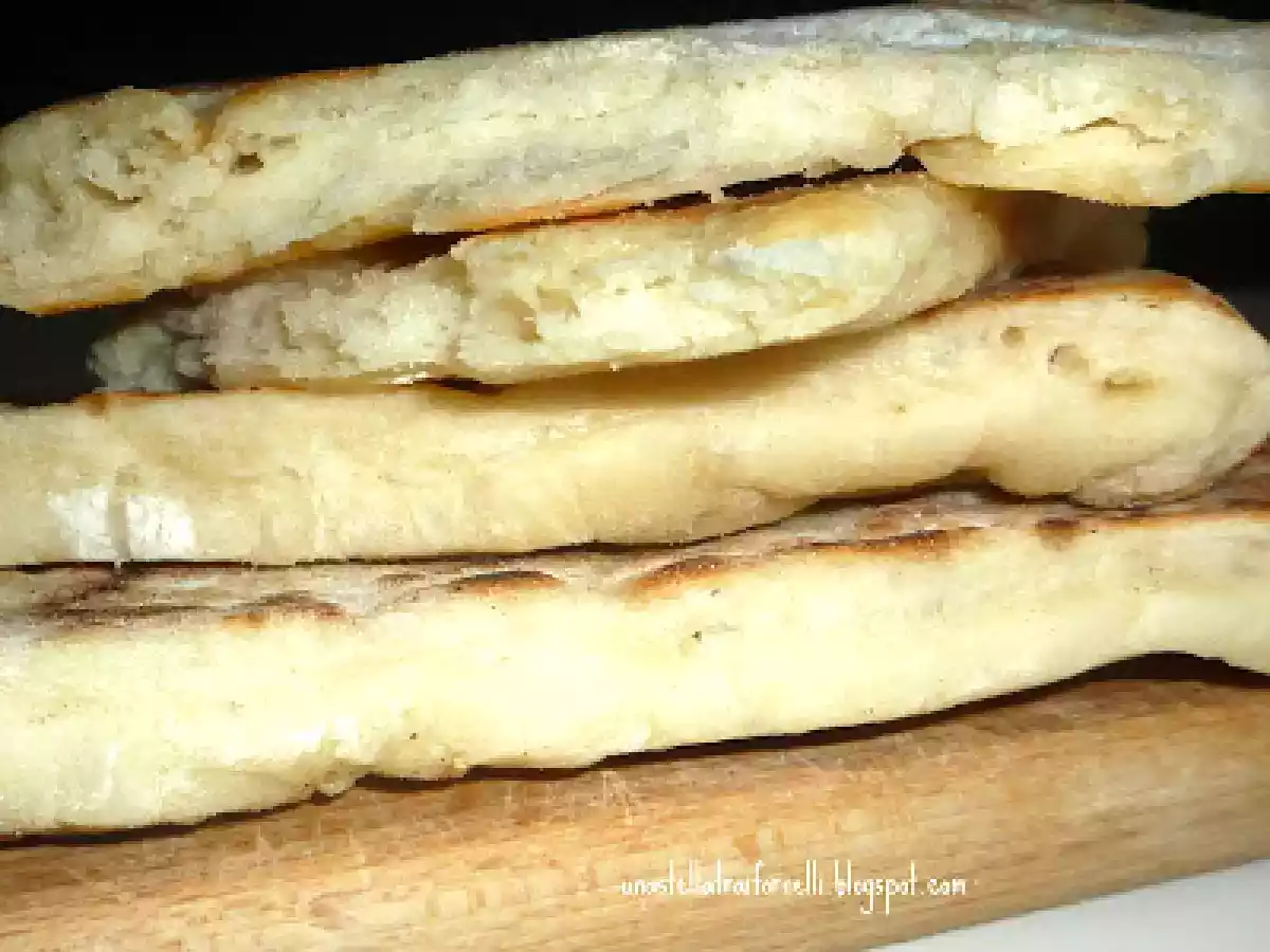 - Variante "garlic naan": spennellare il naan durante la cottura con ghee e 2 spicchi d'aglio tagliati a pezzettini. Vedete dentro come è morbidoso.