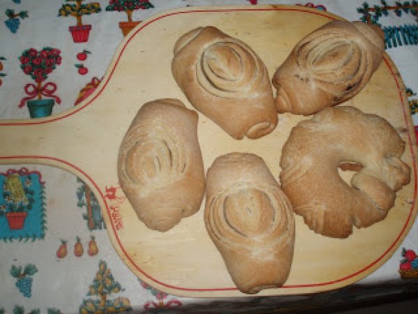 - Riprendere l'impasto e sgonfiarlo un po', stenderlo a rettangolo e pennellarlo con l'olio e chiudere a libretto, lasciar riposare una decina di minuti e poi ristendere la pasta avendo accortezza di far uscire meno olio che sia possibile, pennellare ancora di olio e arrotolare e dare la forma.