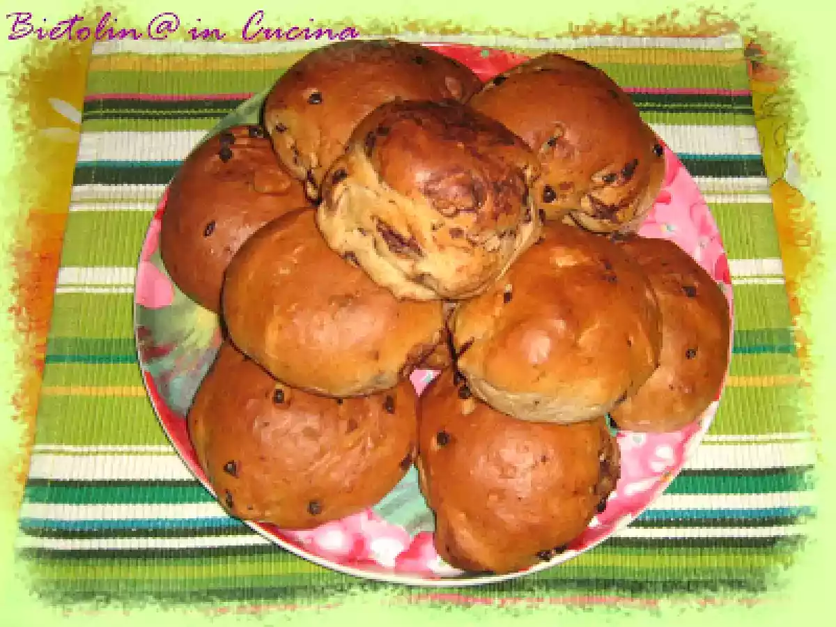 Pangoccioli....i panini al latte con gocce di cioccolato PrecedenteProssimo Altrofacile50 min1574 Kcal Invia questa ricetta ad un amico Stampa la ricetta Contatta l'autore della Ricetta Pubblica la foto di questa ricetta Ingredienti 2 500 gr di farina manitoba 1 cubetto di lievito di birra fresco 250 gr di latte intero 60 gr zucchero 1 uovo intero 1 tuorlo d'uovo 50 gr di burro 10 gr sale 100 gr di gocce di cioccolato Costo stimato: 2.36Euros€ (1.18€/Porzioni)
