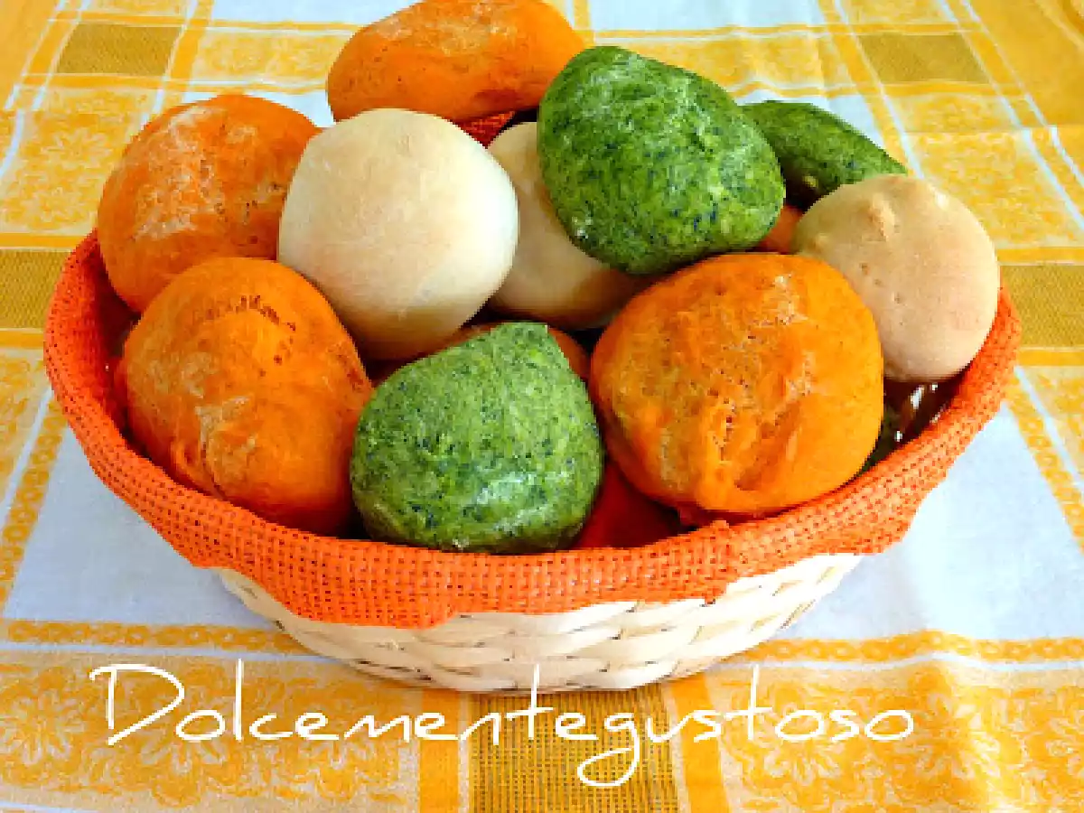 Panini colorati Altrofacile1 ora786 Kcal Invia questa ricetta ad un amico Stampa la ricetta Contatta l'autore della Ricetta Pubblica la foto di questa ricetta Ingredienti 4 750 gr di farina di manitoba 375 ml di acqua 1 panetto e mezzo di lievito di birra (circa 38 gr 3 cucchiaini di zucchero 3 cucchiaini di sale 3 cucchiai di olio d'oliva 150 gr di spinaci 3 cucchiaini di concentrato di pomodoro Costo stimato: 2.08Euros€ (0.52€/Porzioni)