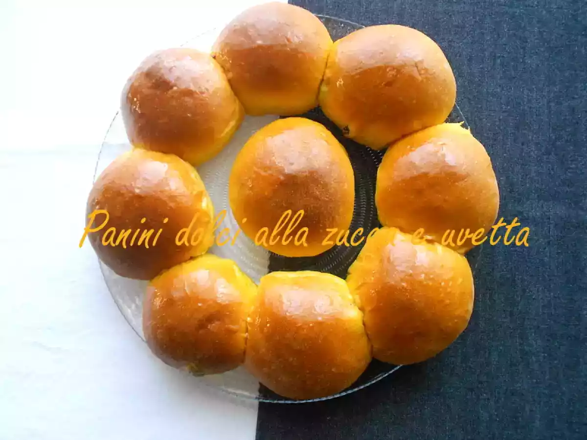 Deliziosi panini dolci arricchiti dalla polpa di zucca e da morbida uvetta. Ottimi per una sana e nutriente merenda per bambini e adulti.