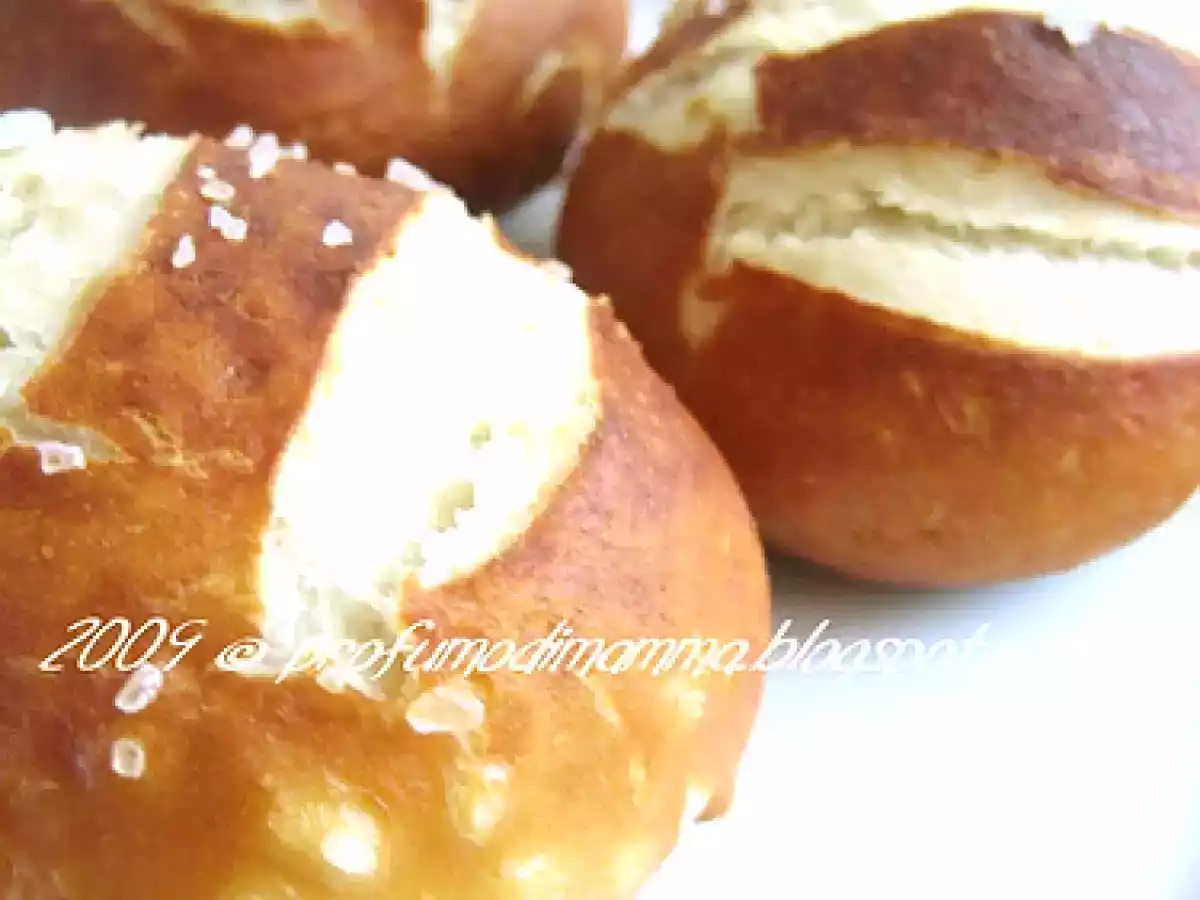 Panini laugenbrot Altrofacile55 min554 Kcal Invia questa ricetta ad un amico Stampa la ricetta Contatta l'autore della Ricetta Pubblica la foto di questa ricetta Ingredienti 4 250 g di farina 0 250 g di farina 00 25 g di lievito di birra fresco 270 g di acqua 1 cucchiaino di zucchero semolato 30 g di burro 10 g di sale sale grosso o cumino Per la soluzione al bicarbonato: 1000g di acqua (1 litro) 8 cucchiaini di bicarbonato di sodio 2 cucchiaini di sale Costo stimato: 1.29Euros€ (0.32€/Porzioni)